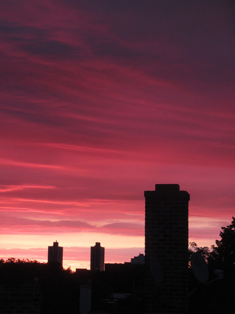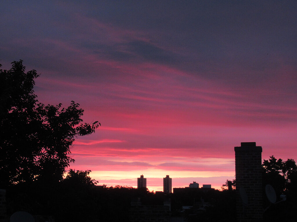 It looked like it was just going to be gray & gloomy this morning… so I skipped my morning ride and went into the studio instead. But then THIS happened!!! A beautiful urban sunrise from the roof of Lillstreet Art Center!