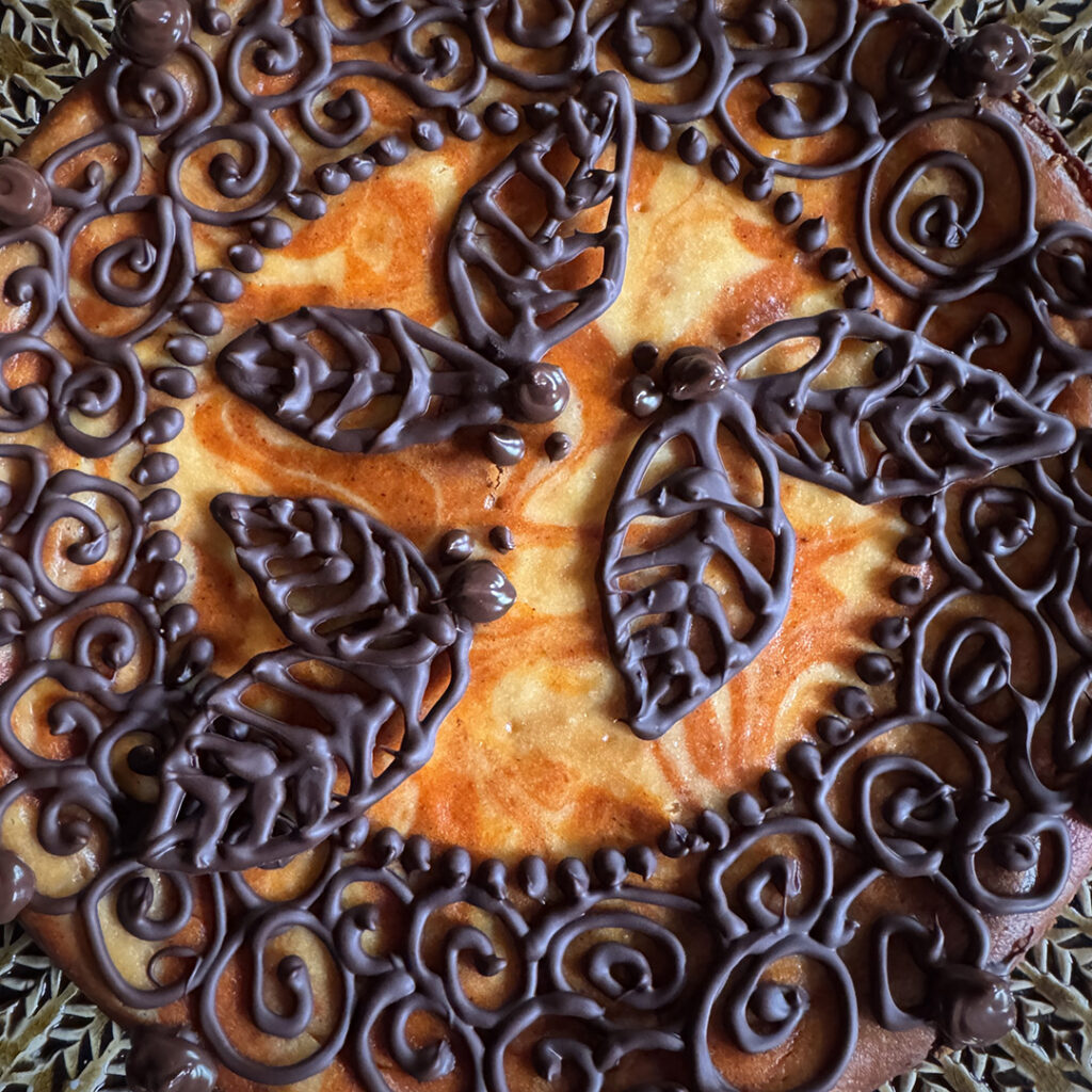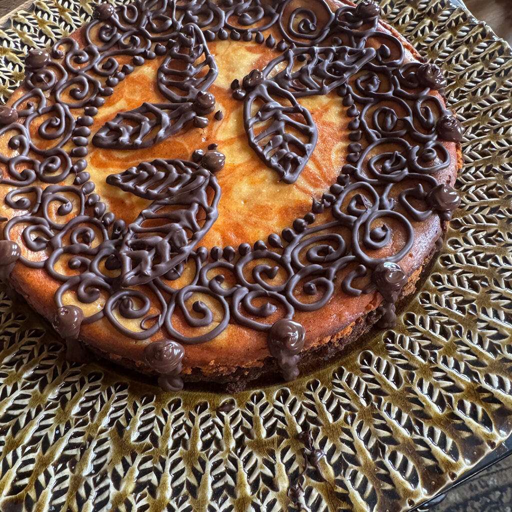 I made a Marbled Pumpkin Cheesecake with a gingersnap cookie crust!