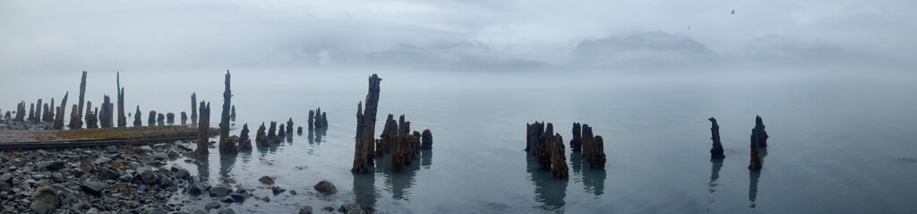 Usually my panoramic photos are reserved for amazing sunrise skyshows. But not this time… no sky, no show! But it was the mysterious calmness of the Seward waterfront that caught my attention this time. Bigger drama… bigger photos!