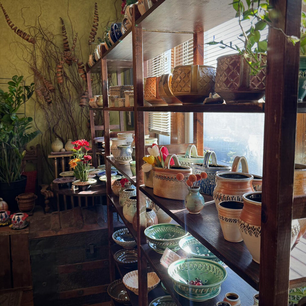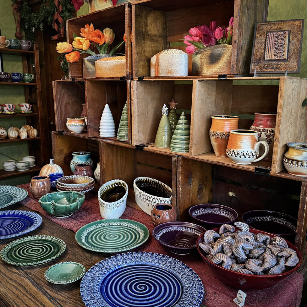 So here we are… all refreshed & restocked for Day Two of my HOLIDAY HOME SHOW! The sun is shining in & pottery is gleaming. Perfect conditions for a little holiday shopping today! C’mon over… open now until 6:00pm!