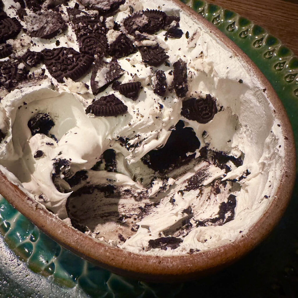 Ashley brought me this yummy, fluffy OREO trifle in a handmade oval.