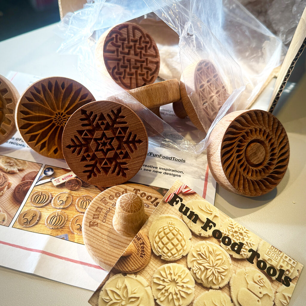 Beautiful texture stamps to press into your dough before baking… and you know how much I love stamping!!! Thanks to the folks at FUN FOOD TOOLS.