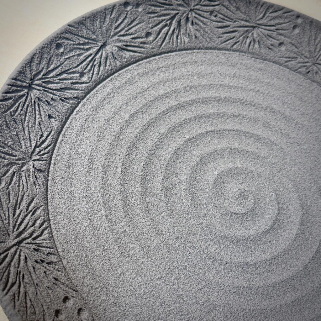 Here’s one of my class demos on carving & surface decoration that I finally got around to glazing… been a while. The platter has white slip on the flange rim that I dried a bit before carving the leaf pattern. And then I added little “berries” using a darker clay body. A rich green glaze makes it perfect for the holidays! Kinda now wish I had carved holly leaves instead?… ah, next time!!!