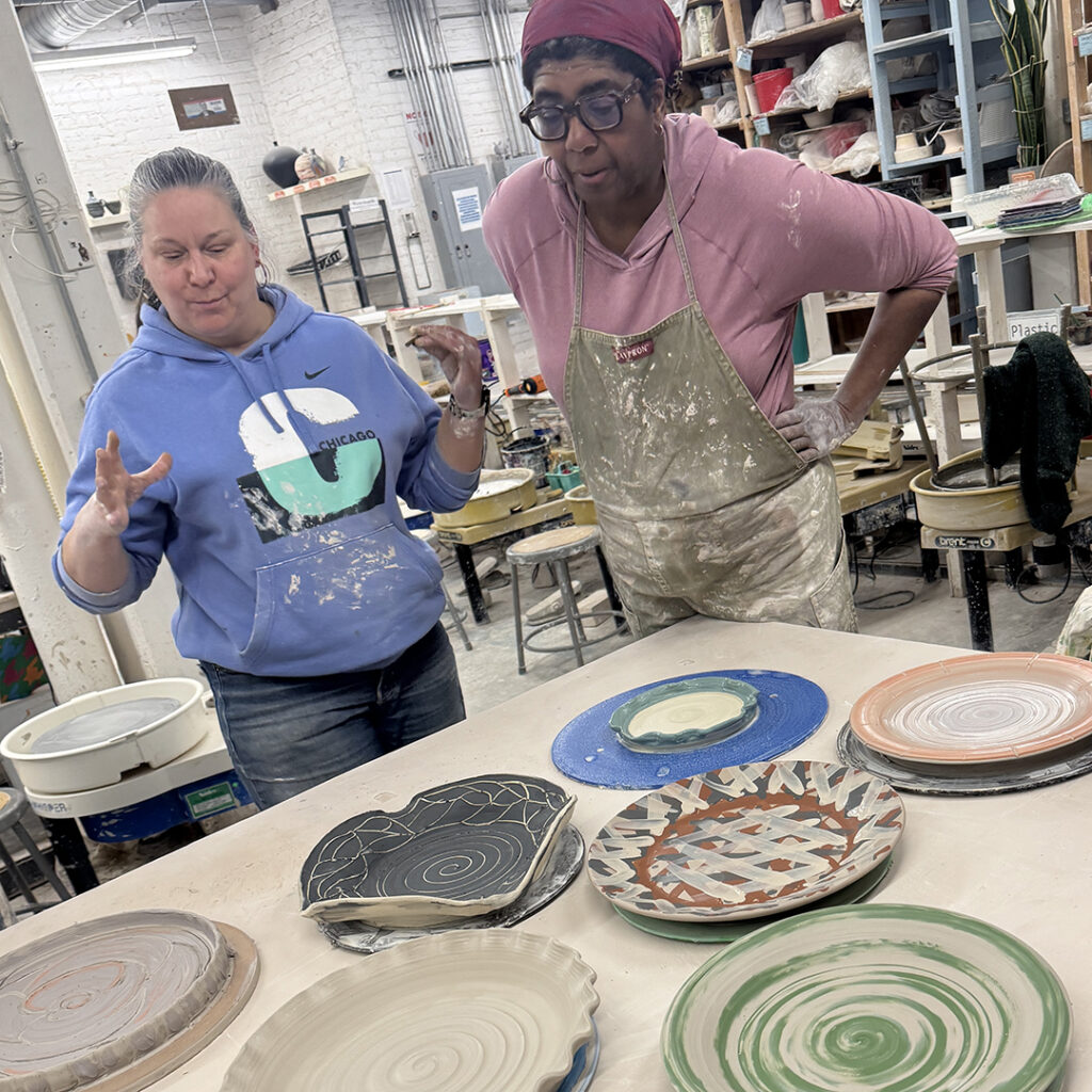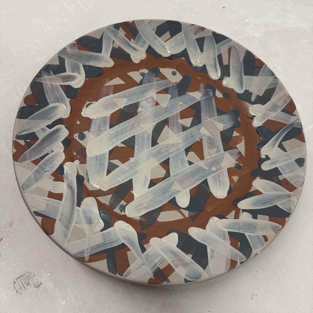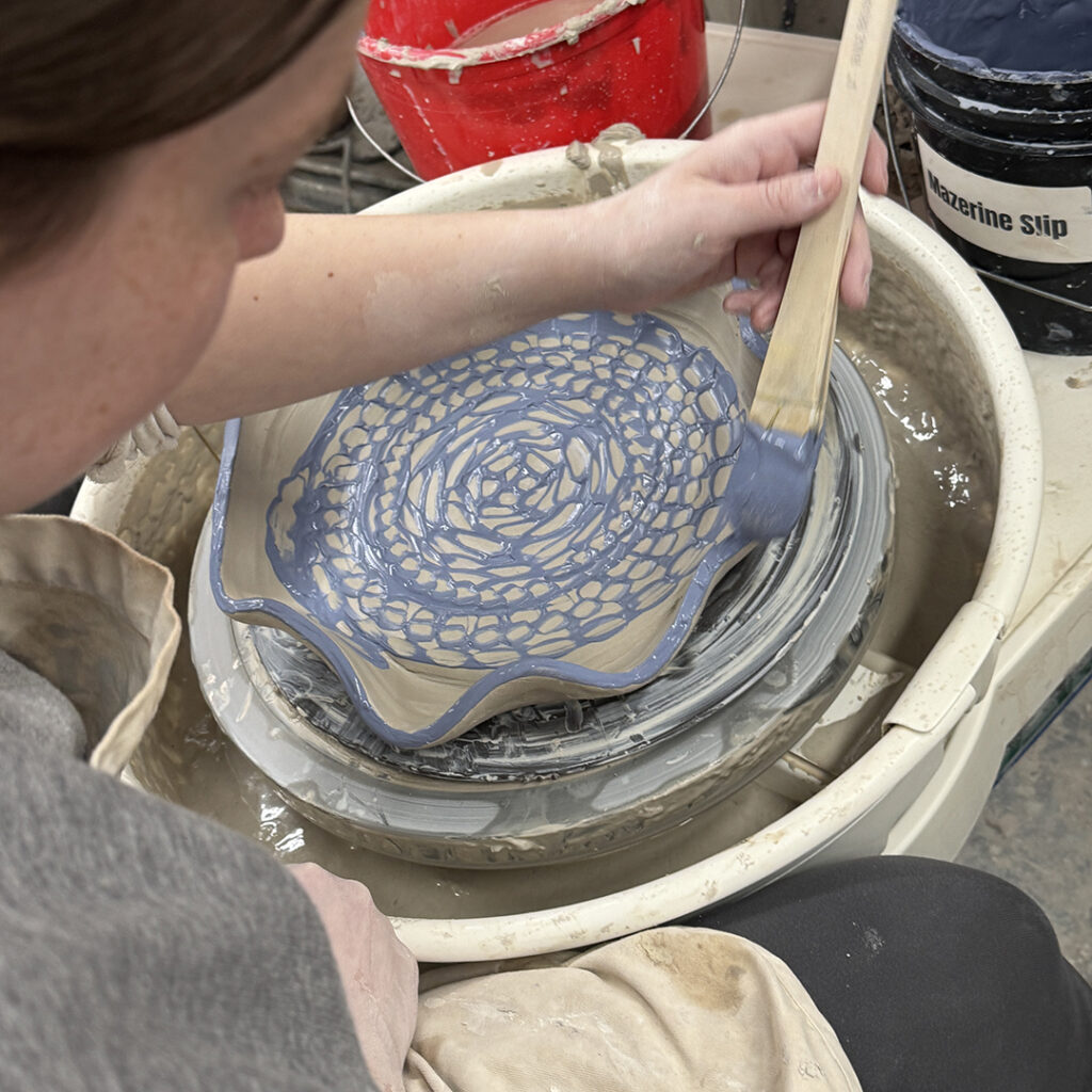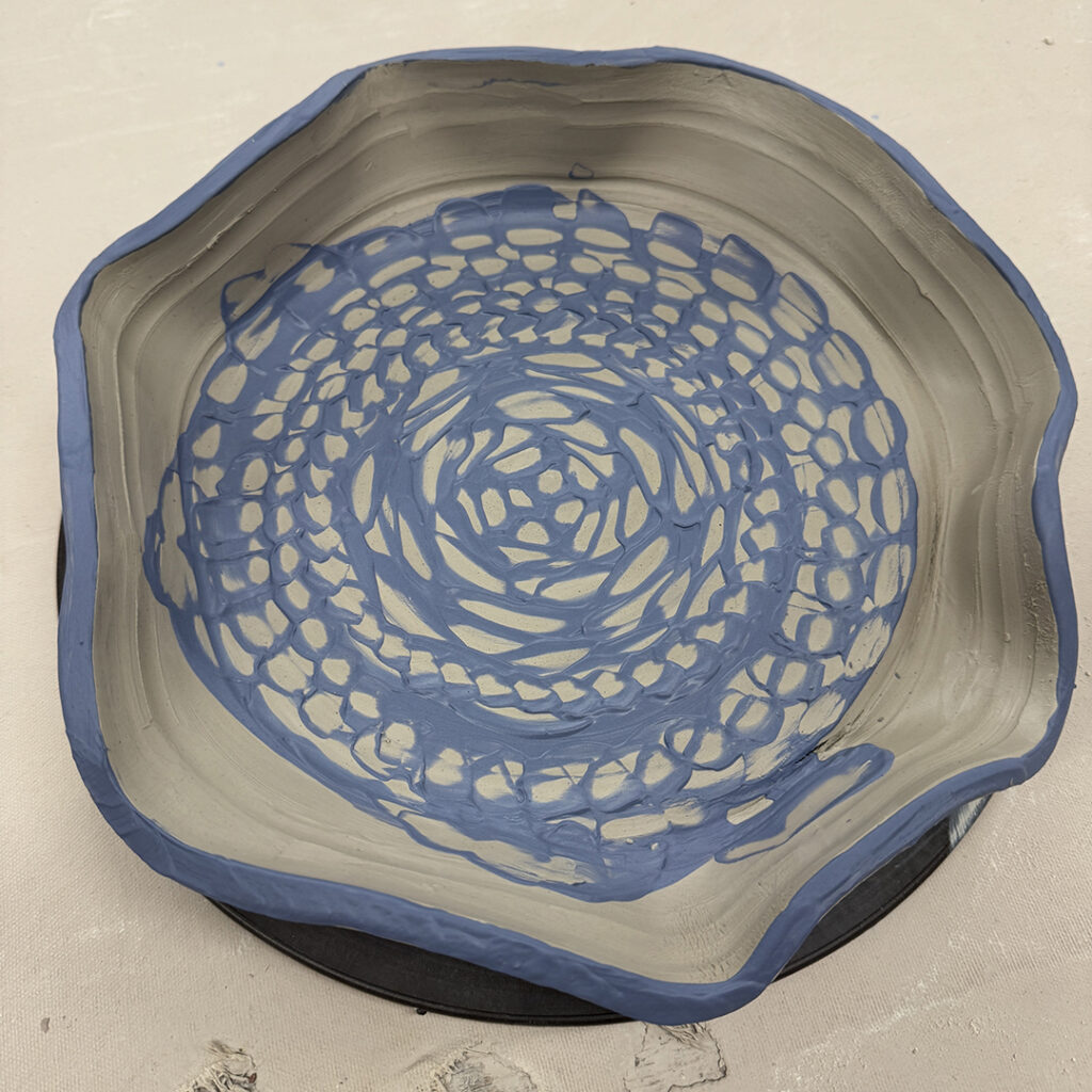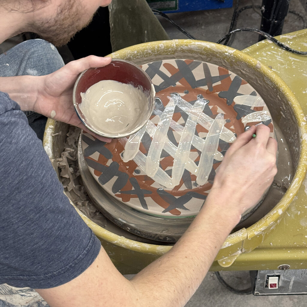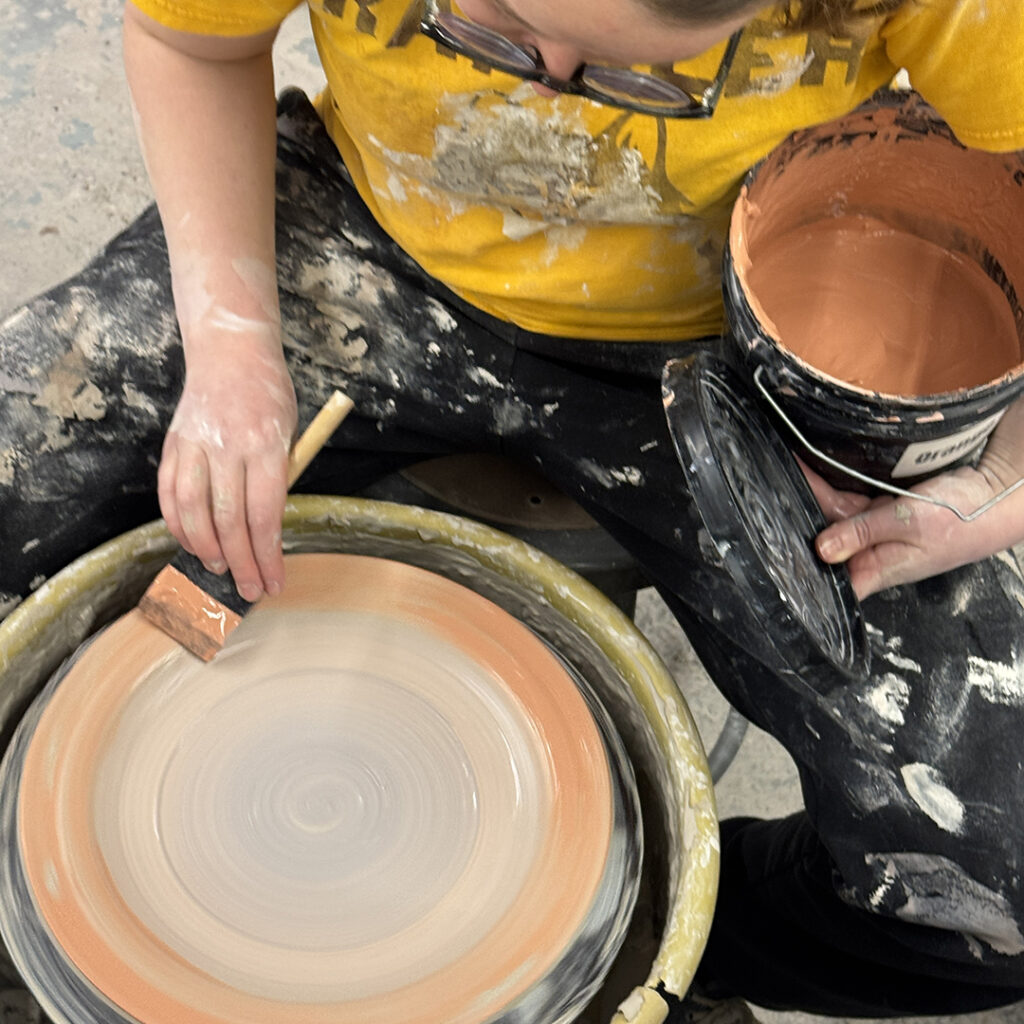 This week in my LILLSTREET THROWDOWN class, we did a decorative platter challenge. Which started with 45 minutes to throw a five-pound platter. Not too tough… until they found out that they had to rotate around to different wheels every ten minutes or so. Picking up wherever the person before them left off. Then after several rounds, they ended back at their original wheel to see what kind of a platter was left for them! Some were very nice… while others may have struggled a bit & ended more with a small salad plate?!