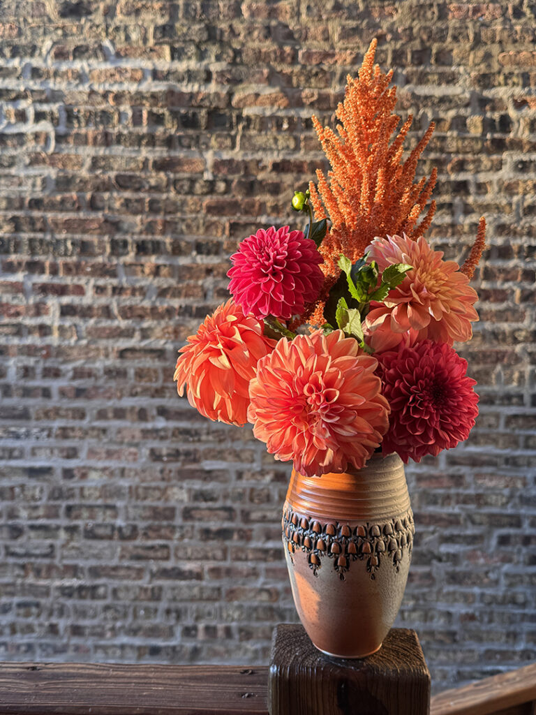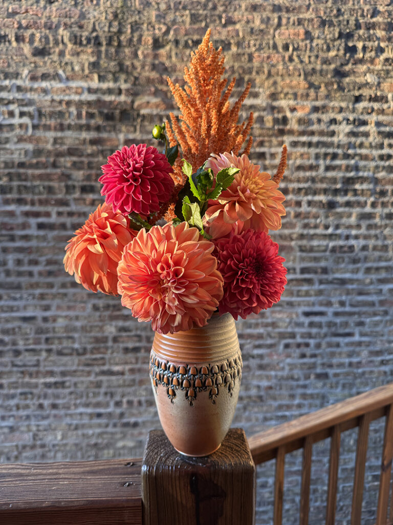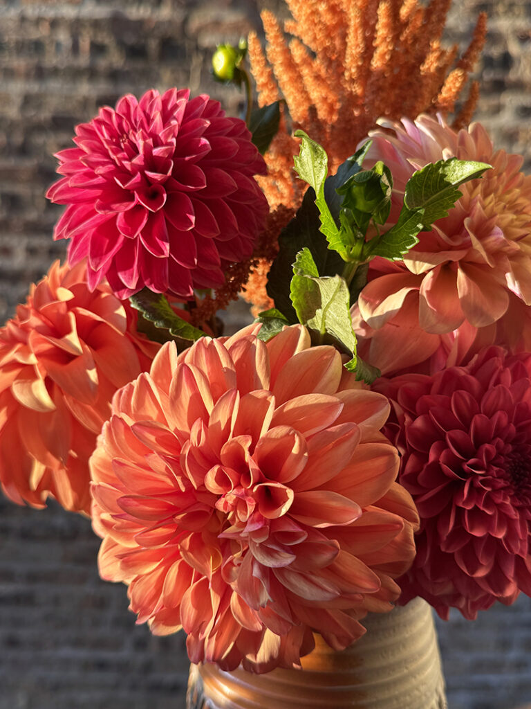 Another beautiful bouquet of farm-fresh dahlias from Vangie’s Farm… at yesterday’s Farmer’s Market in Andersonville. Such amazing colors & textures. I do love growing some dahlias in my garden… but they never get quite as amazing as these ones!!! Good thing I have plenty of vases ready to go whenever some new flowers come home with me!!!