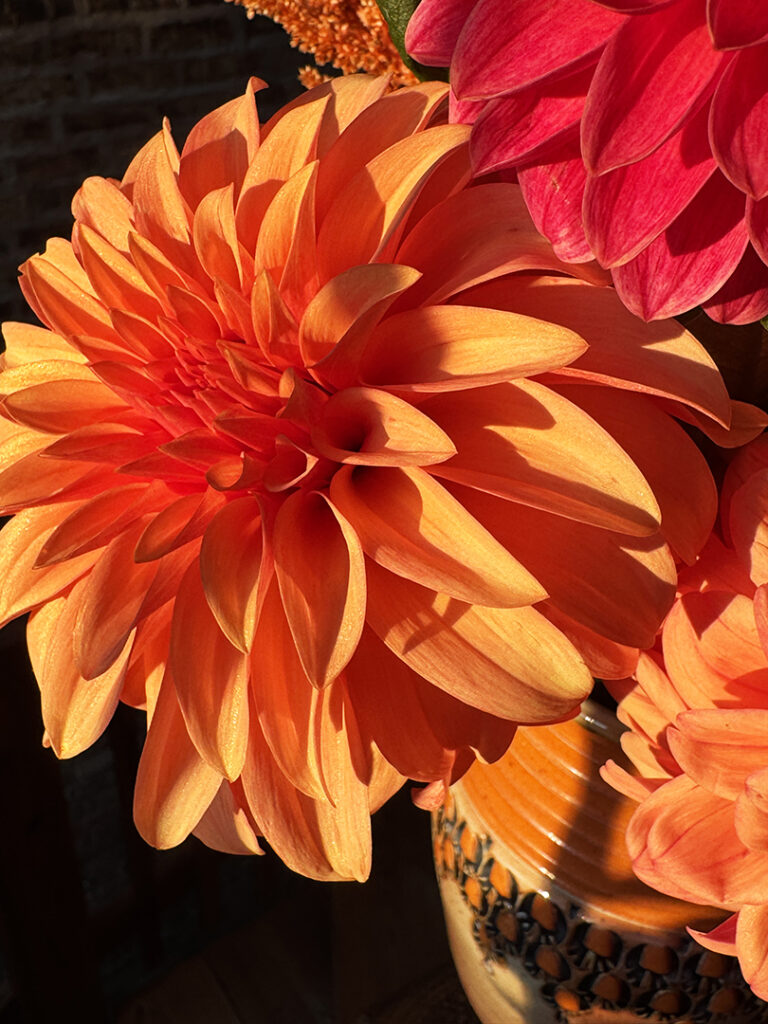 After another fun trip to the Farmer’s Market, I’m so glad I picked up a large bouquet of dahlias from Vangie’s Farm. Their flowers are just AMAZING…with such great colors, textures & dimensions. A fantastic collection of farm-fresh flowers… a custom-made collection of flowers just for me. Good thing I “just happen” to have a few extra vases around the place to put them in!!!