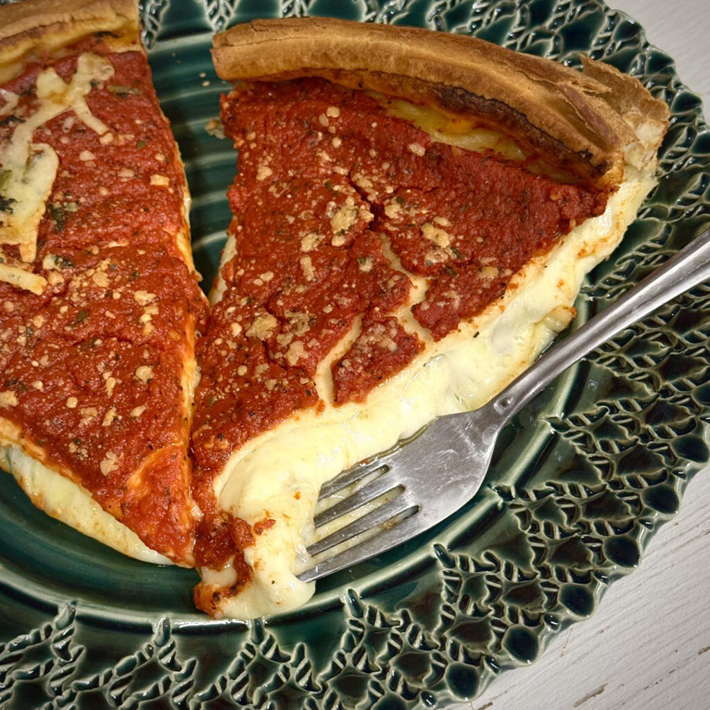 with some deep dish gooey cheesy yumminess!