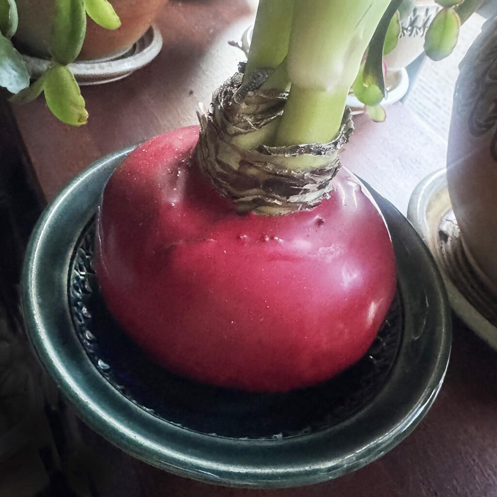 So I received an amaryllis bulb as a belated Christmas gift from one of my students this week. And it’s “wax-covered”… like a babybel cheese?! Anyway, so there’s no dirt, no roots & no water??? Wait, what??? Just put it in the sun & watch it grow? Really??? Goes against everything we know about caring for plants? I can’t wait see how this one plays out. Thanks Kathy for my new houseplant intrigue!!!