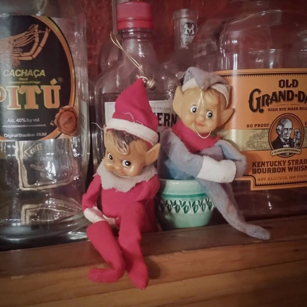 Looks like the Elves are getting a little crazy on their Shelf… the liquor shelf!!!