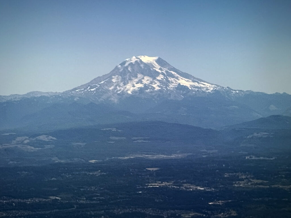 One last mountain on my way home… with a layover in Seattle and a view of a snow-covered Mt. Rainier.