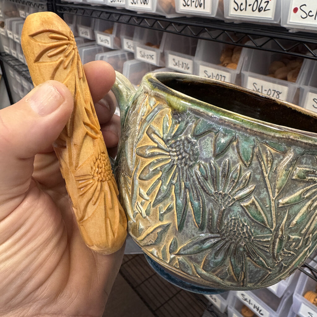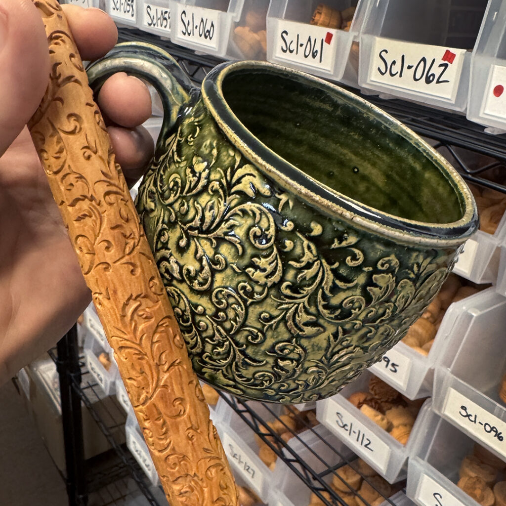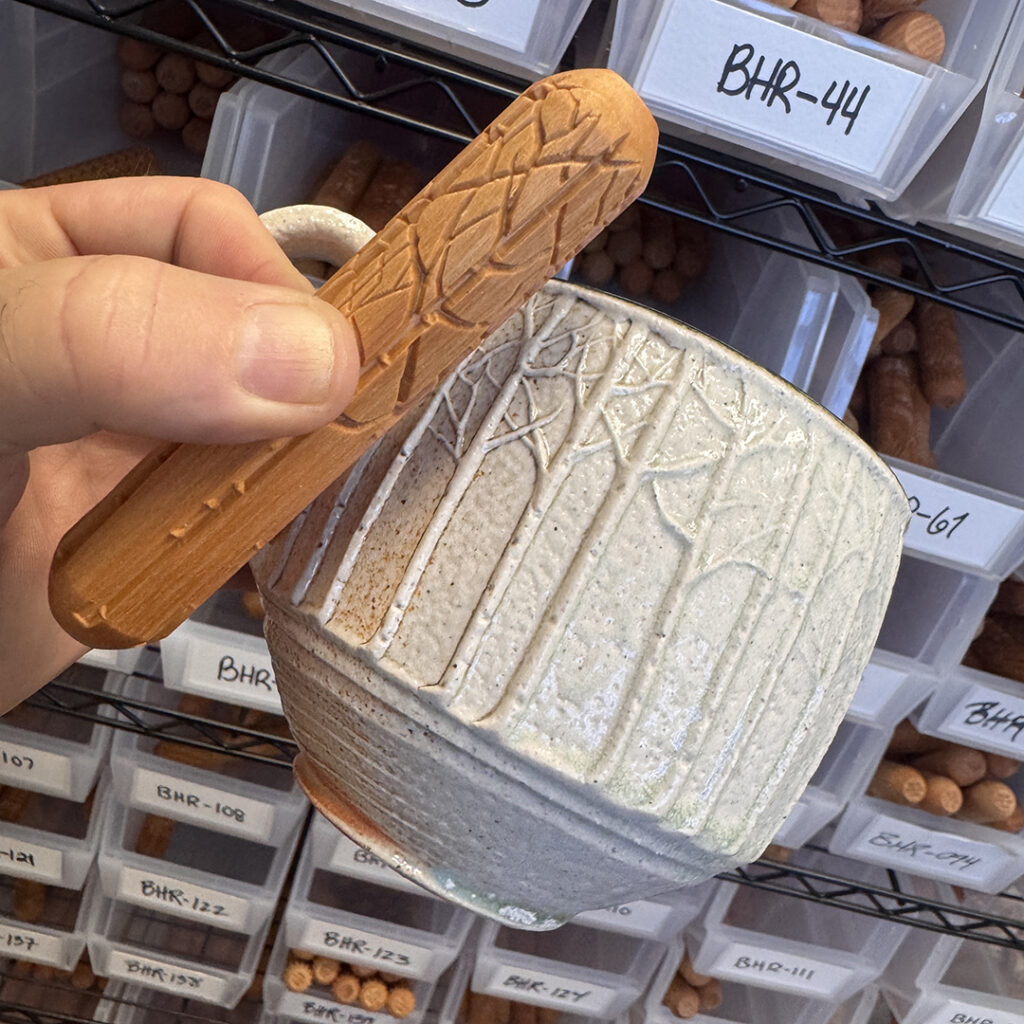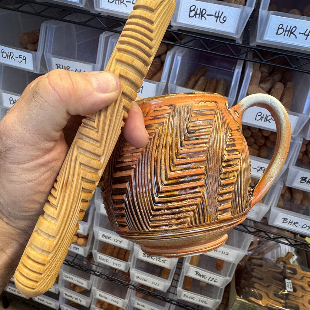 So I did a little roadtrip up to Appleton, Wisconsin yesterday to drop-off some hybrid mugs with the fine folks at MKM Pottery Tools. It was great to finally meet Rick, as well as his support staff with Angie, Rachel, Seth & Christopher… as we’ve only known each other “virtually” online. It was great to finally hang-out, get to know each other for real & deliver some of my soda-fired hybrid mugs to them. It was kind of a cool “full-circle moment” as I use the MKM handrollers to create my hybrid mugs. And Appleton is apparently where all the magic comes from!!!