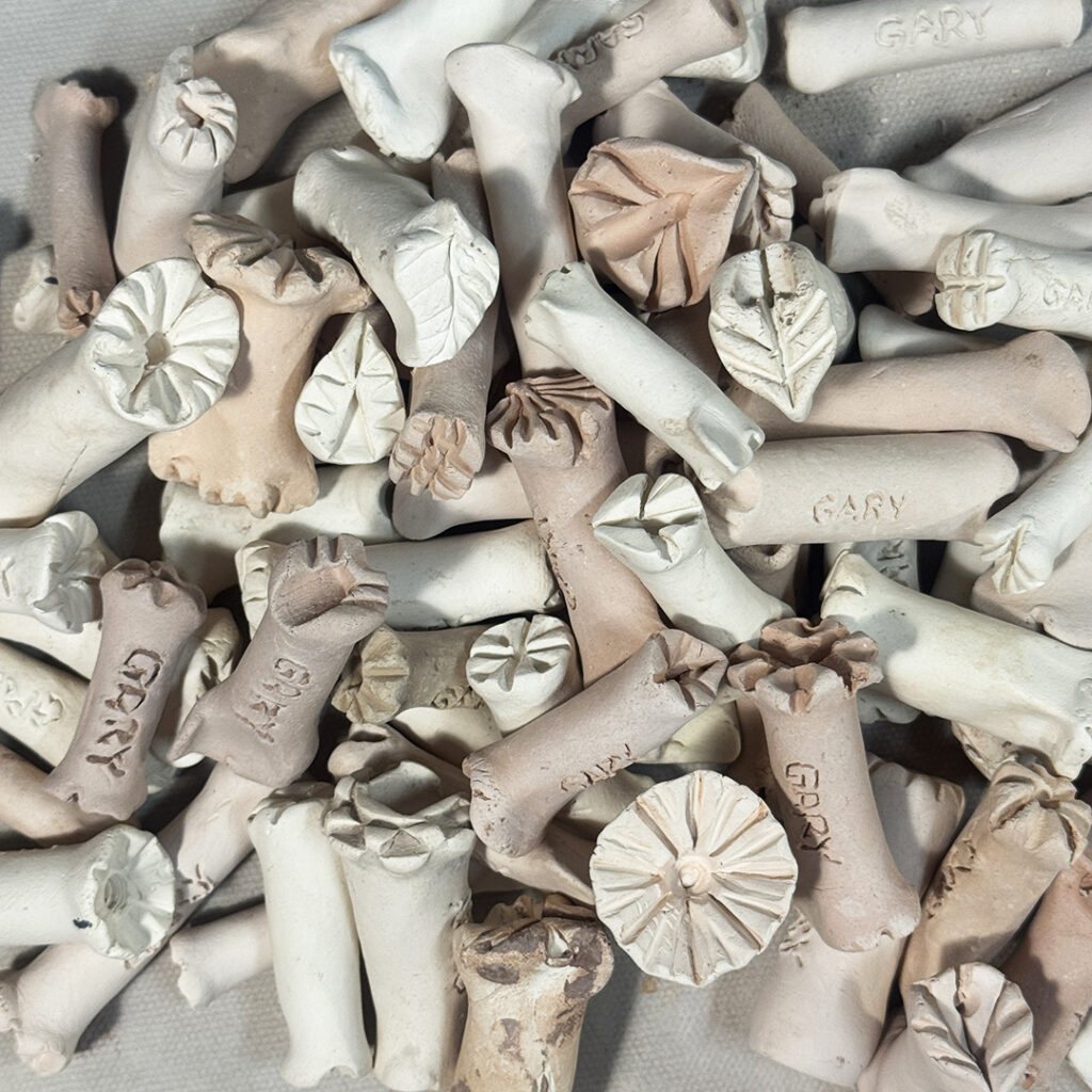 Last night in my Advanced Beginner’s class, we closed out the evening with a little stamp-making demo & interactive making session. Hopefully I can get these stamps bisque-fired soon enough for them to start using before the class session ends!!!