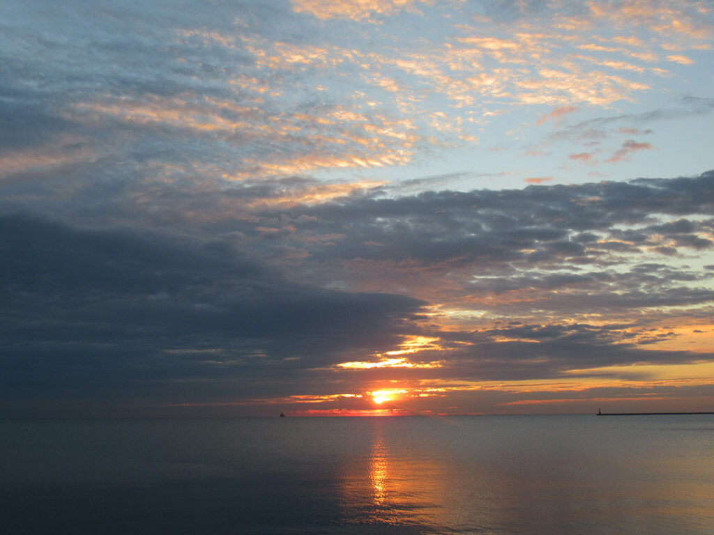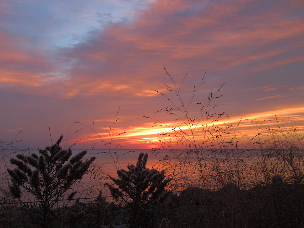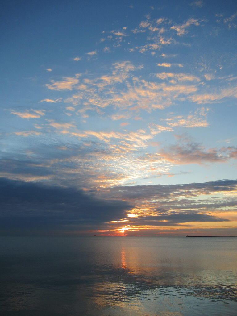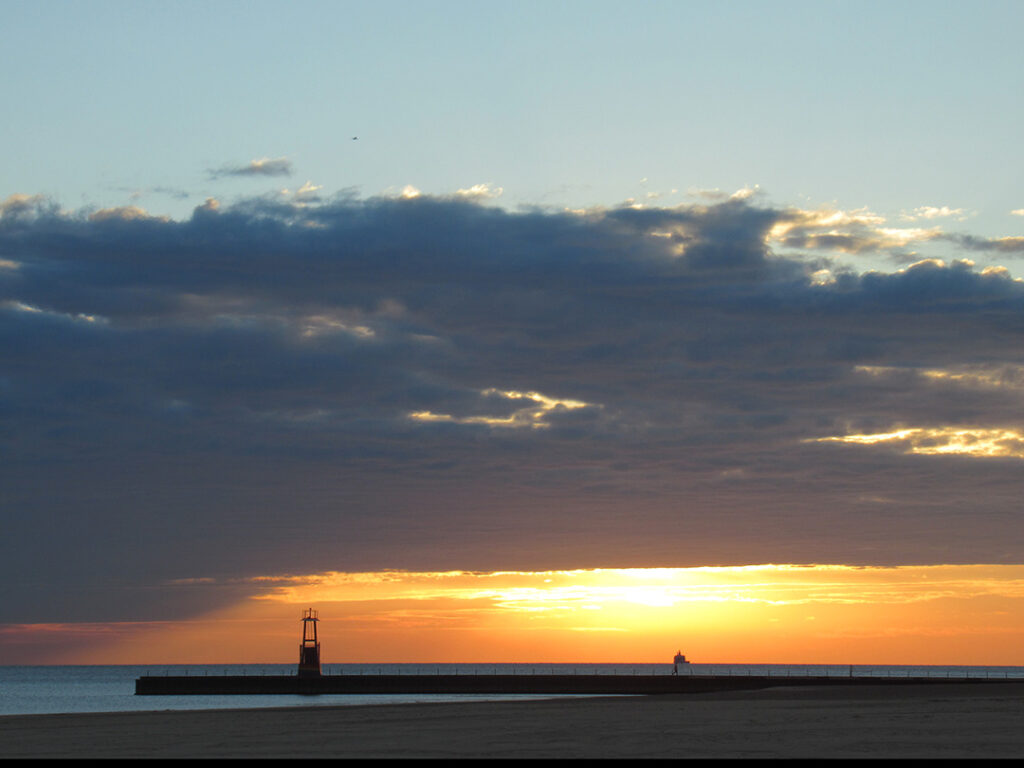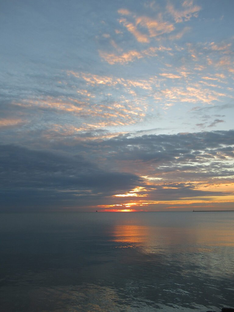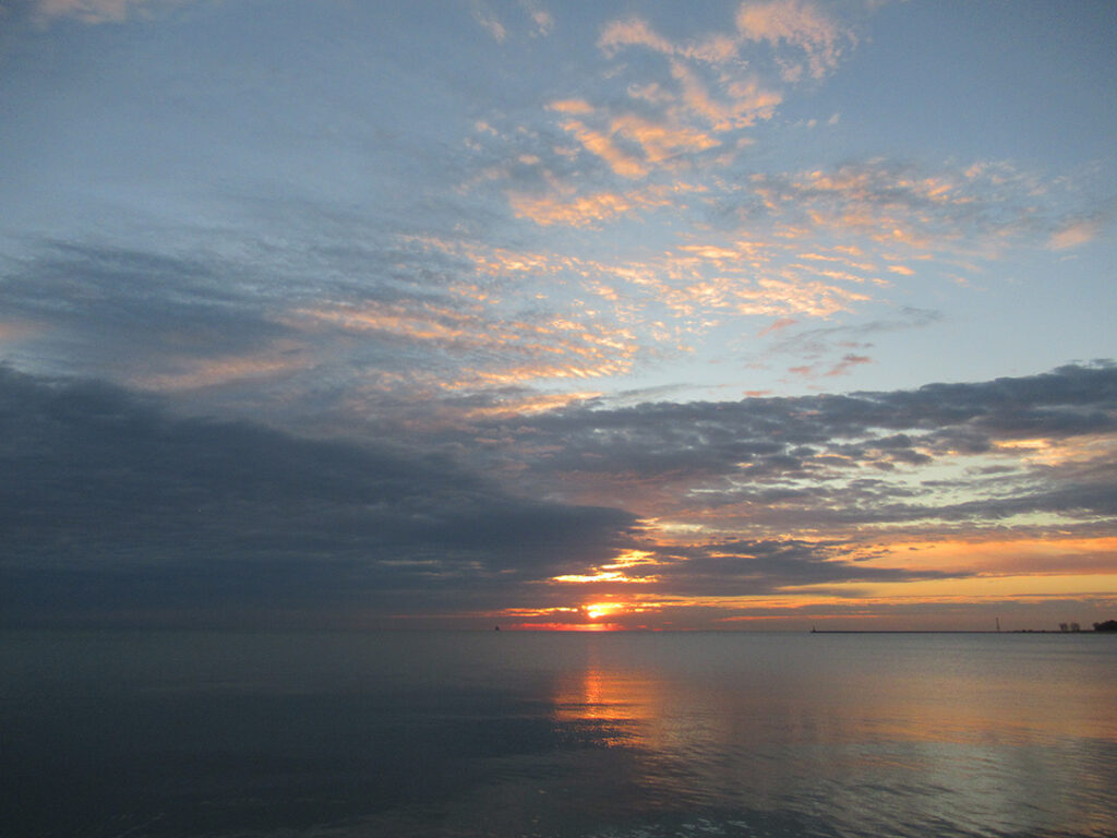 It turned out to be another gorgeous Fall day. But it started with a LOT OF CLOUDS!!! Crazy-cool clouded drama along the lakefront… unsure if we would ever see the sun?! But gradually the sun made its way through the clouds… finding a little opening. Great colors… great sunrise… great surprise!