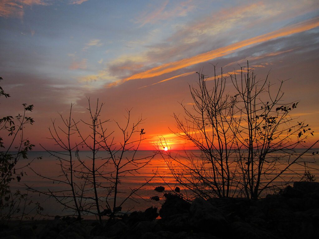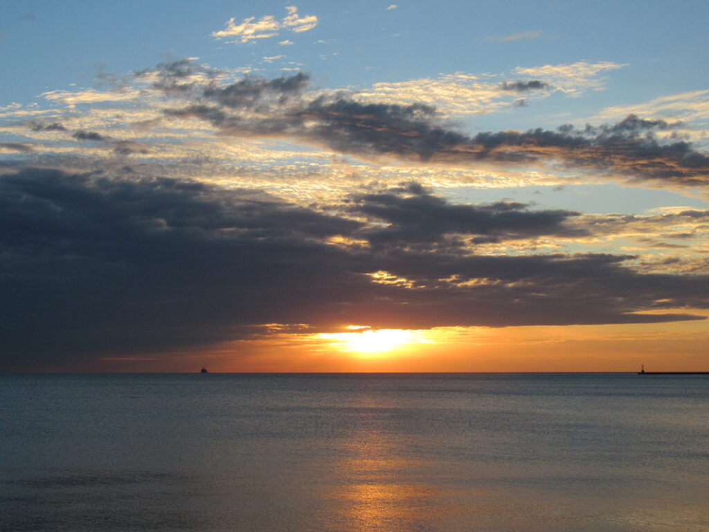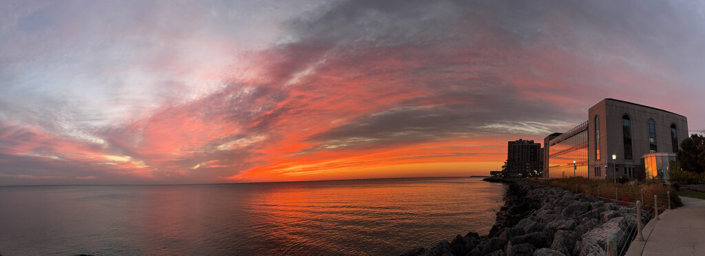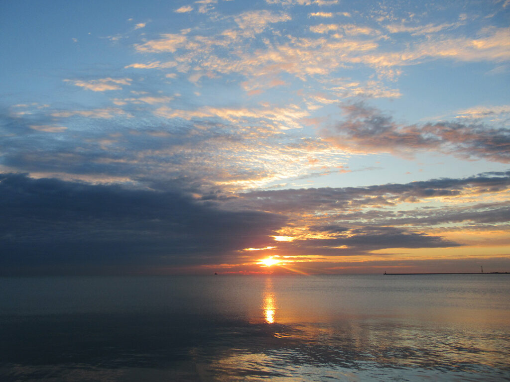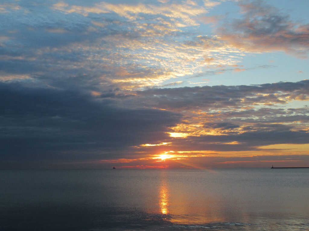 It turned out to be another gorgeous Fall day. But it started with a LOT OF CLOUDS!!! Crazy-cool clouded drama along the lakefront… unsure if we would ever see the sun?! But gradually the sun made its way through the clouds… finding a little opening. Great colors… great sunrise… great surprise!