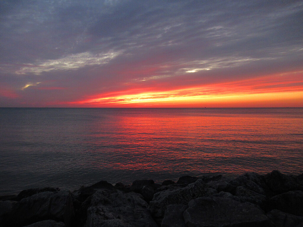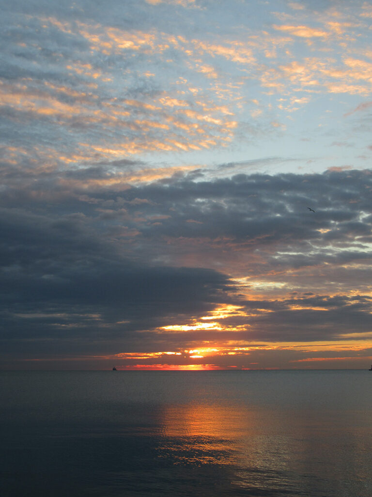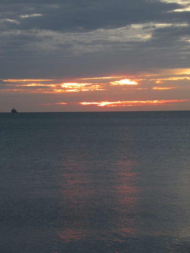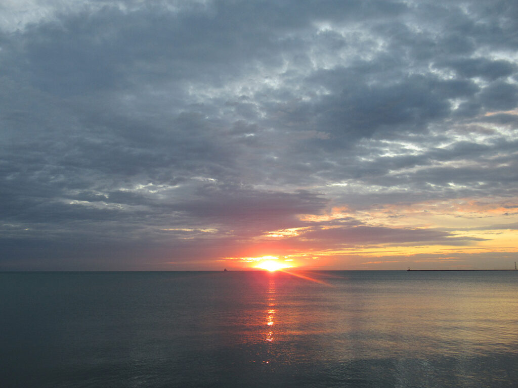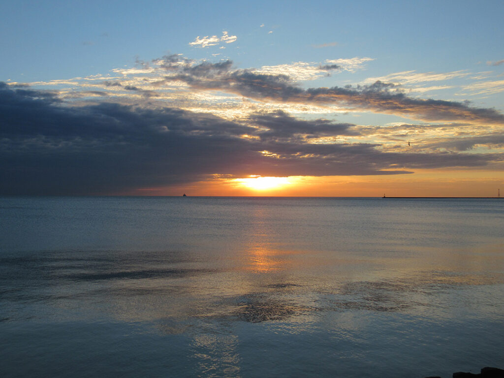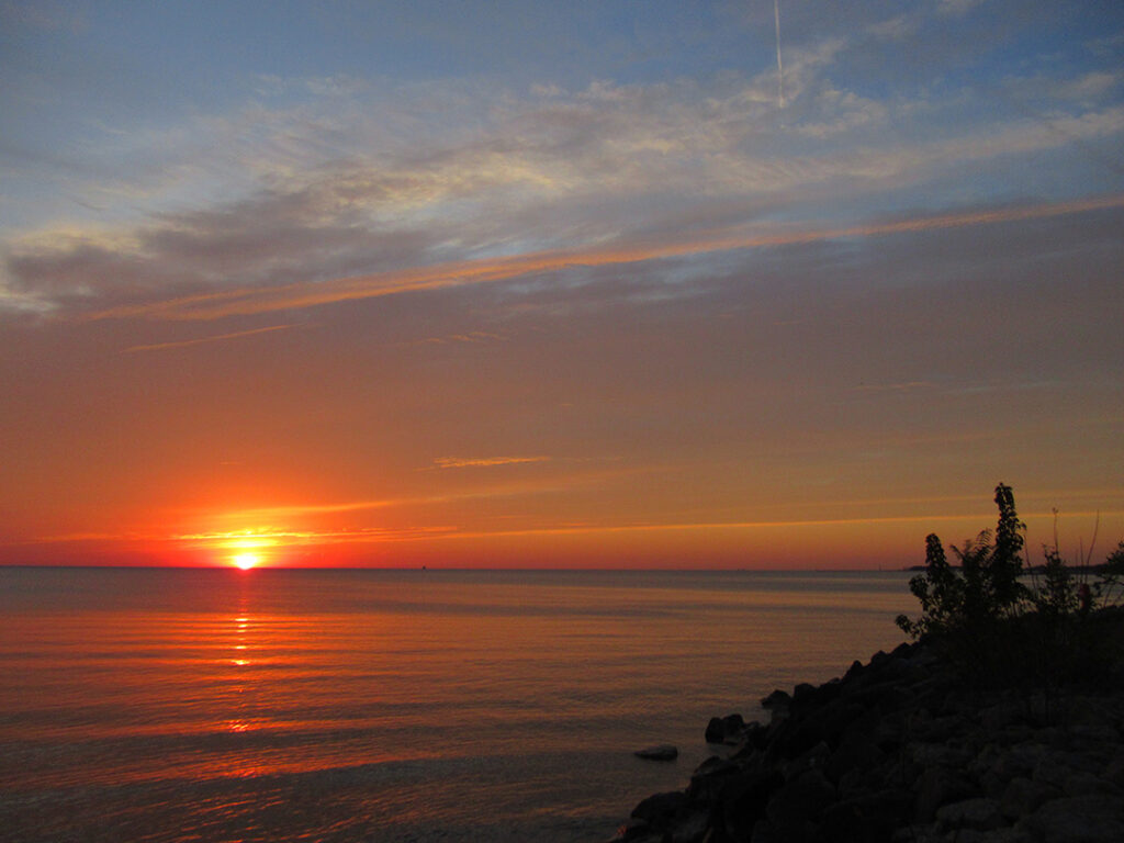 It turned out to be another gorgeous Fall day. But it started with a LOT OF CLOUDS!!! Crazy-cool clouded drama along the lakefront… unsure if we would ever see the sun?! But gradually the sun made its way through the clouds… finding a little opening. Great colors… great sunrise… great surprise!