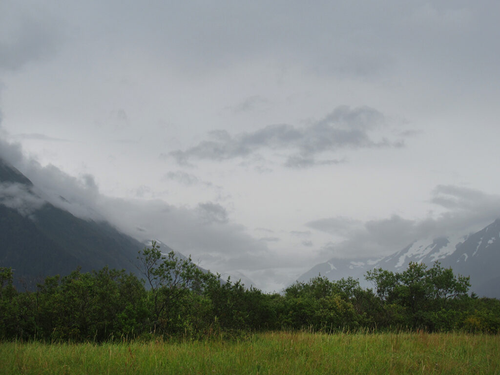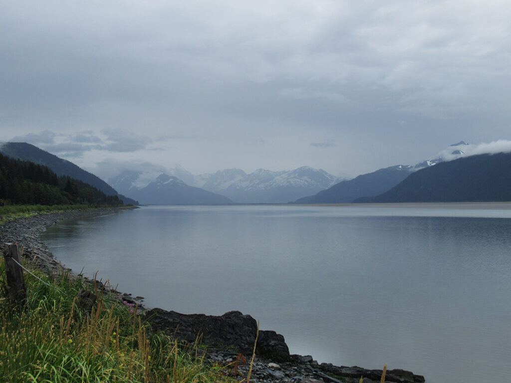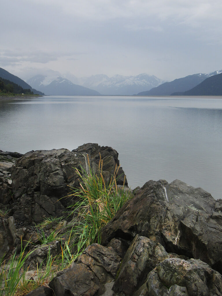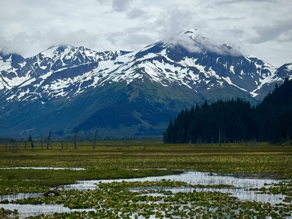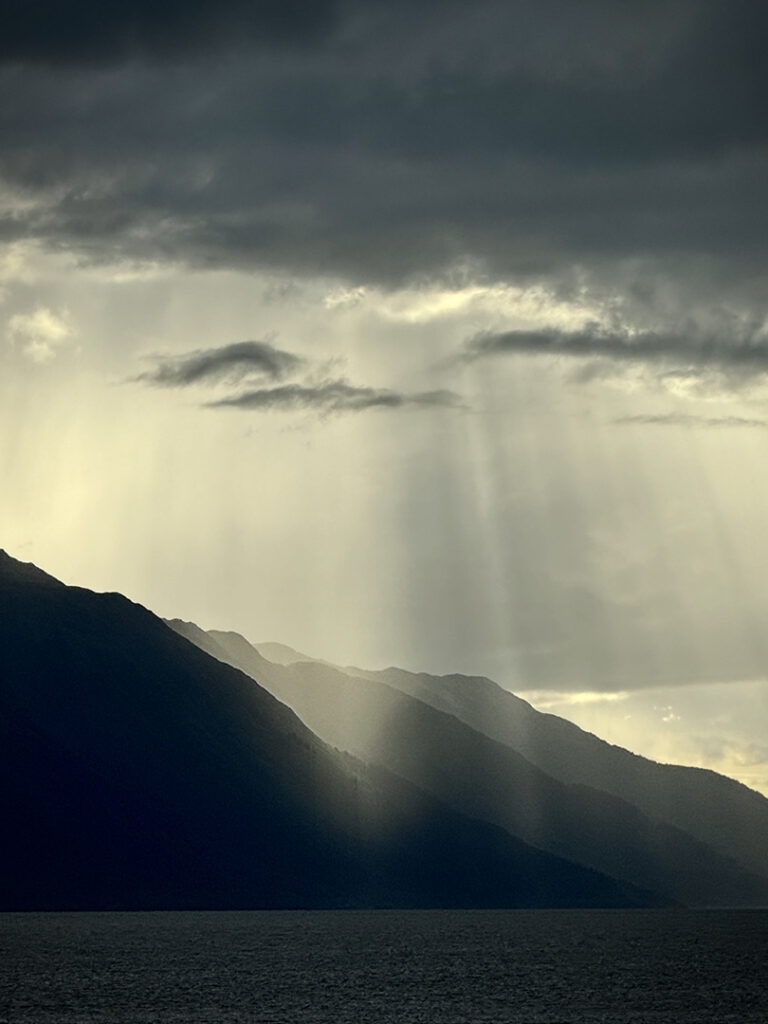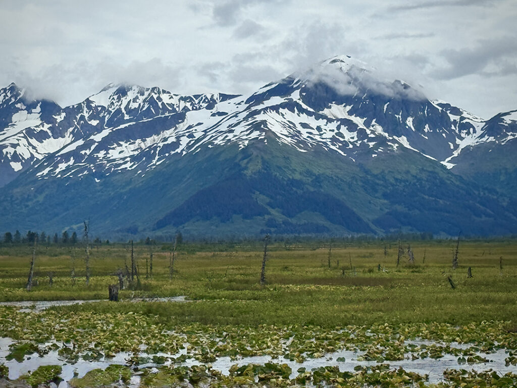 Heading out of Seward after the ocean boat tour toward Anchorage… we were back on the road ready for more snow-capped mountains, swampy lagoons, waterfalls & big sky clouds. What I wasn’t expecting?… a pretty FANTASTIC sunset with sunbeams streaking across the sky!