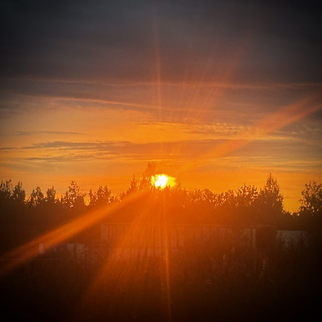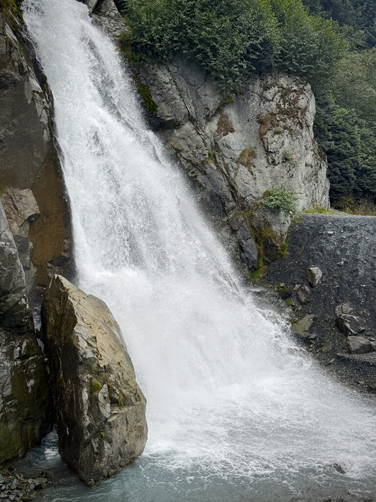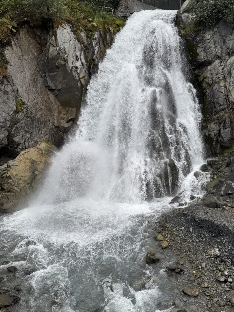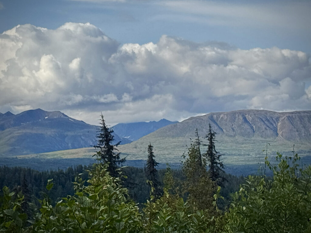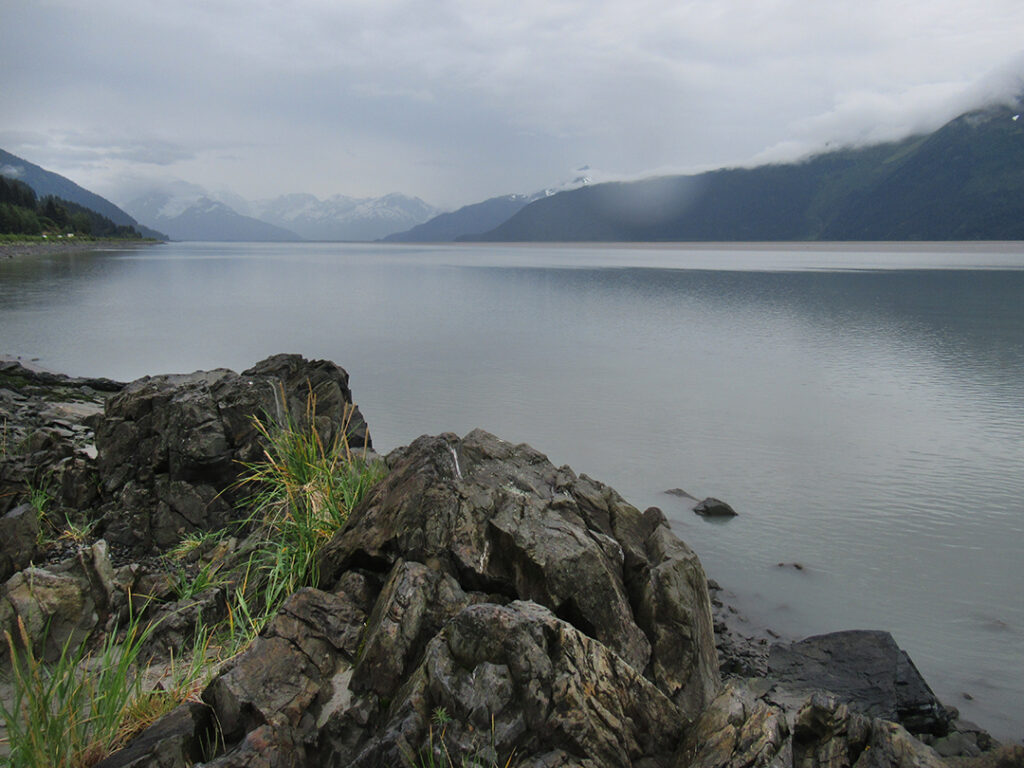 Heading out of Seward after the ocean boat tour toward Anchorage… we were back on the road ready for more snow-capped mountains, swampy lagoons, waterfalls & big sky clouds. What I wasn’t expecting?… a pretty FANTASTIC sunset with sunbeams streaking across the sky!