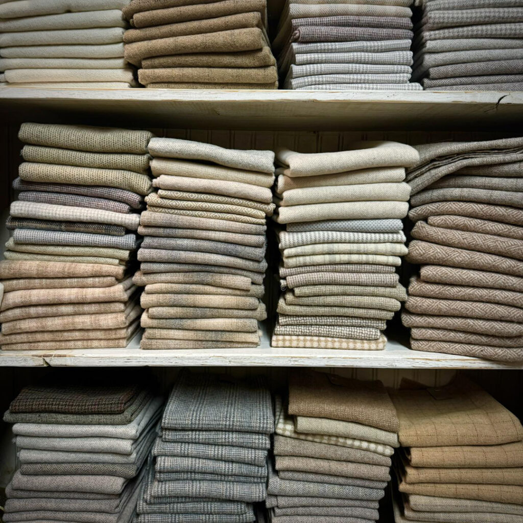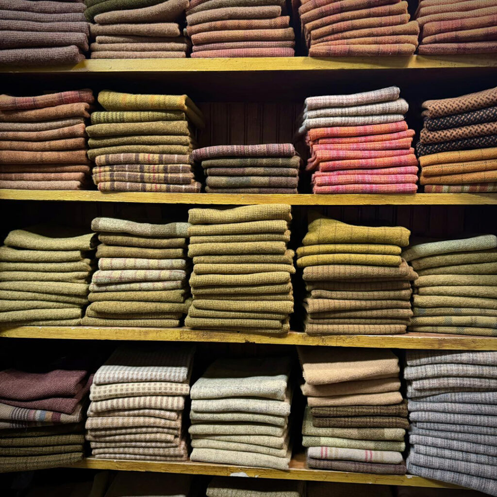 I have no need for fabrics currently… but there is something so satisfying about these neatly stacked shelves of woolen patterns & textures at the antiques shop today! And as a tactile-texture guy… I pretty much had to touch every one of them!!!