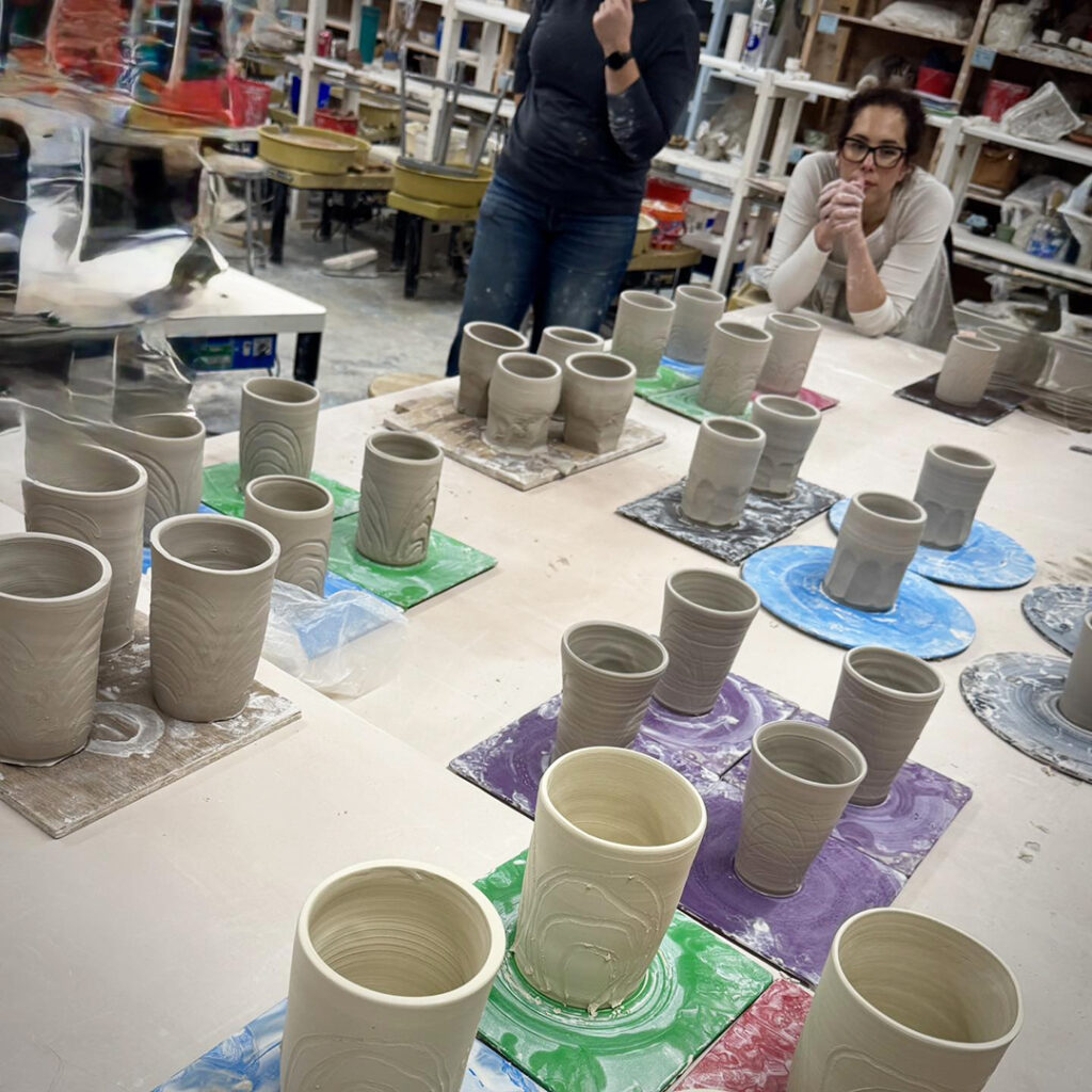 And so it begins… tonight was the first night of our LILLSTREET THROWDOWN class!!! Their first challenge was to “recreate” two drinking glasses in clay. Matching sizes, proportions, angles, textures & styles. Easier said than done!