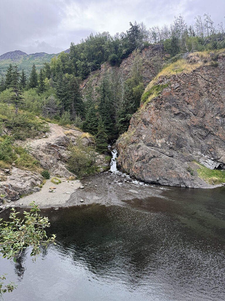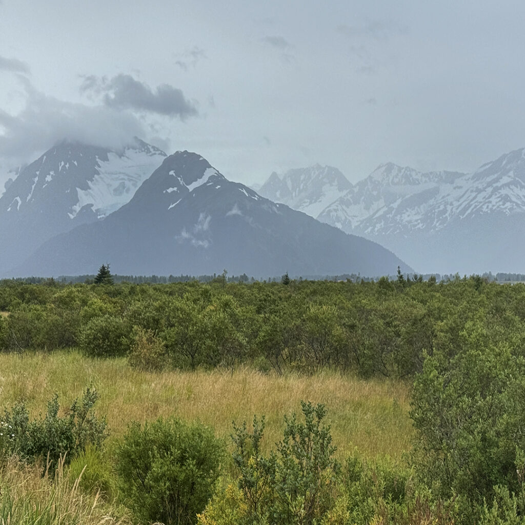 Theresa’s plan was to drive us down Chena Hot Springs Road to see what we could along the way. There are so many ponds, creeks, rivers, swamps, forests, moss, mushrooms… all of them ideal for a moose to be hanging out in. It was slightly overcast, misty & rainy at times, but so beautiful! This was more of the Alaska I expected. But I will say… I was surprised by all of the flowers everywhere??? Again, as an unknowing Midwesterner, I must admit I kinda thought Alaska was always cold & frequently covered with snow!!! Who knew is was no nice in the summer with flowers everywhere??? Not me.