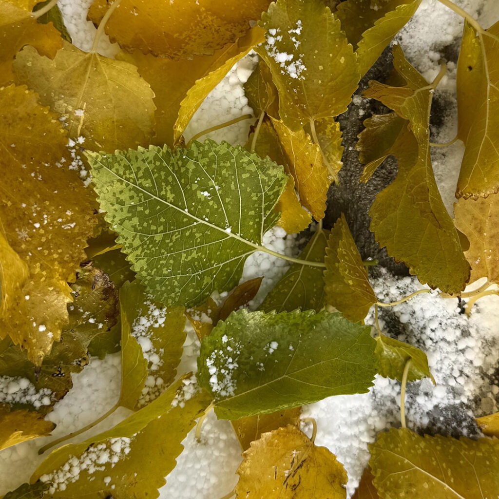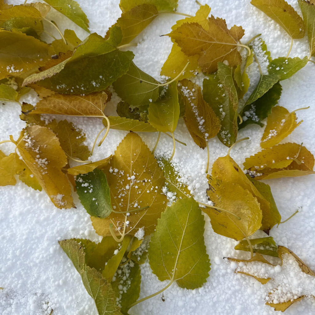 Well, we finally got our first snow of the season… a bit too soon for my liking. Nothing too heavy in my neighborhood. But it looks like some of the trees were caught off-guard too!