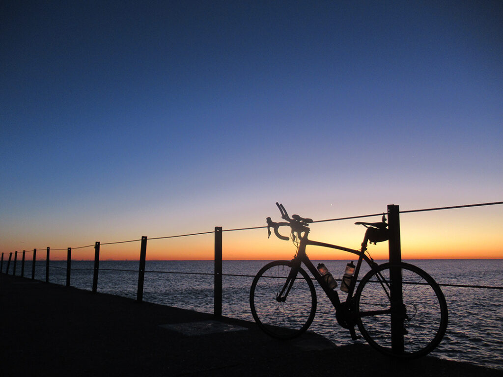 Crisp & clear this morning. I had to pile on some layers as it was in the lower-forties as I head out the door for my morning ride. I’m not mentally ready for all of these layers so early in the season… I still want the warmth of Summer!!! Did I mention it was cold?!… long sleeves. jacket, gloves, hat under the helmet… the whole sh-bang!