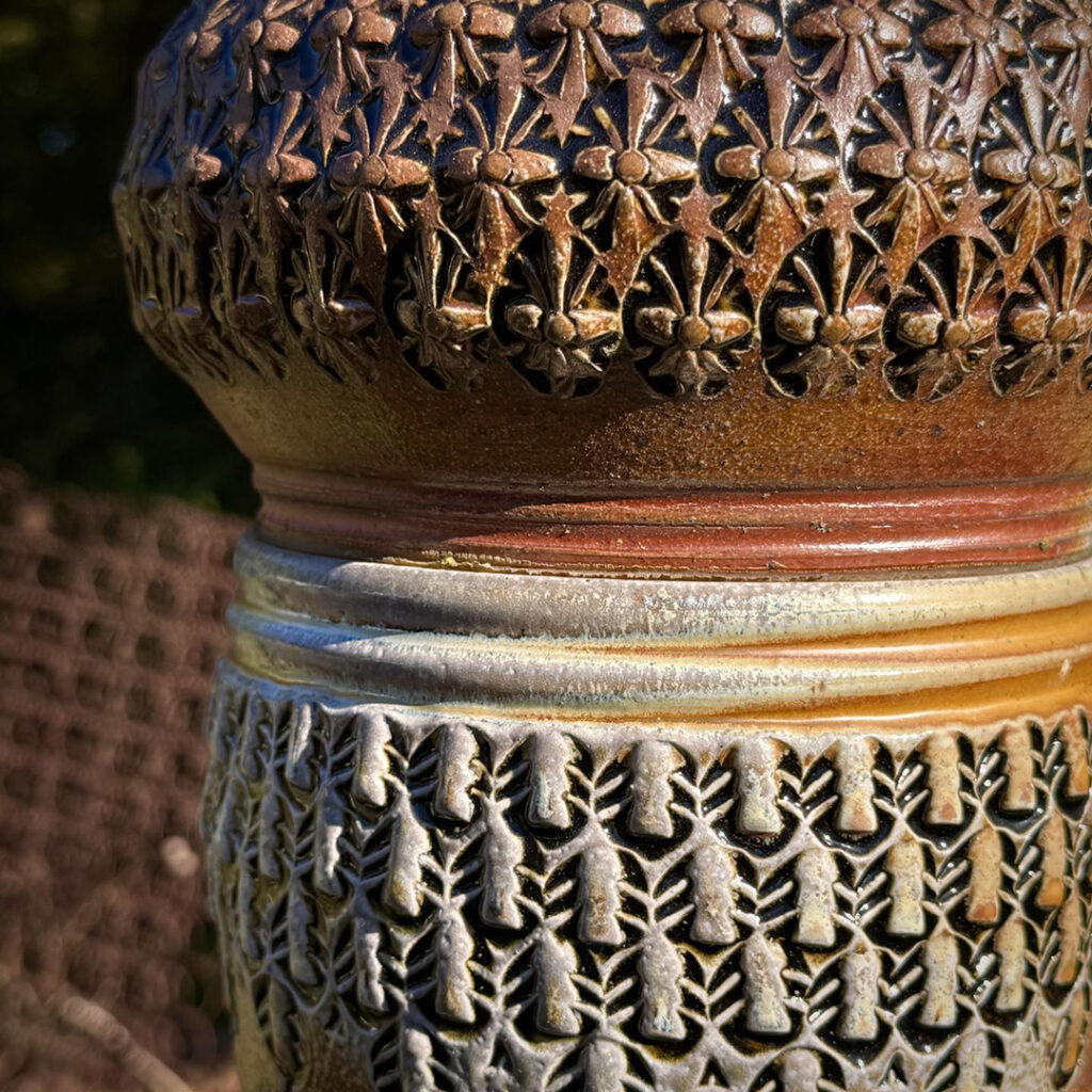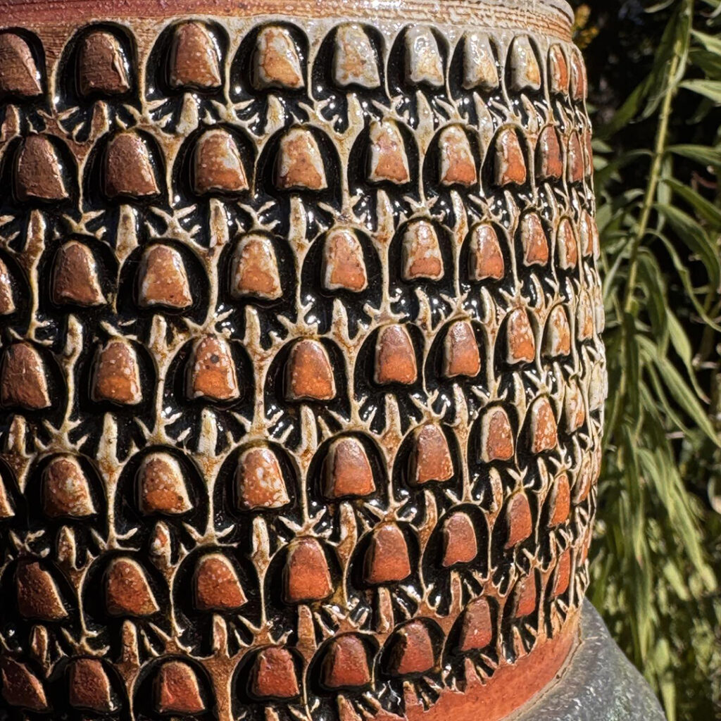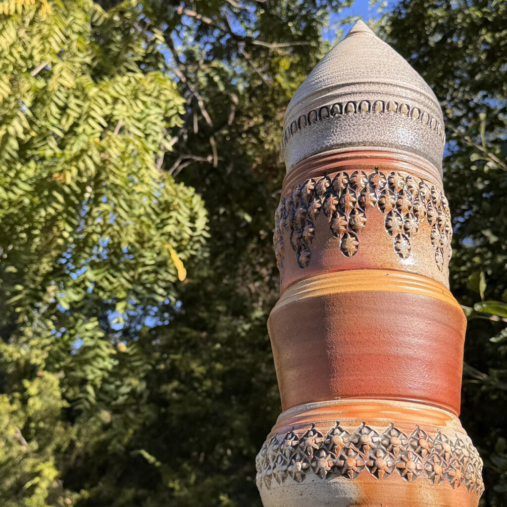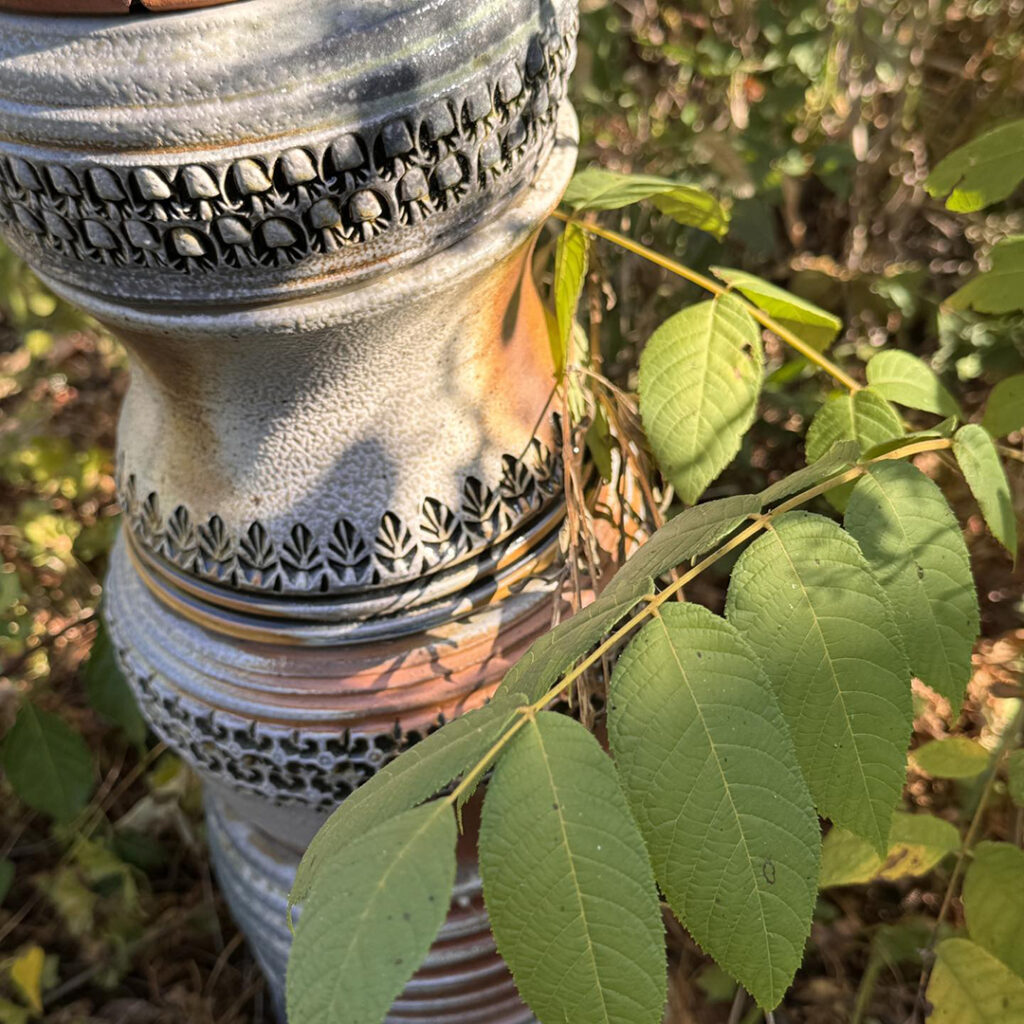 We had a beautiful Fall weekend a couple days ago. Perfect for a roadtrip weekend down to Peoria to visit with friends. Oh yeah… and to re-visit the stamped & soda-fired totem pole in their front yard!! Look familiar???