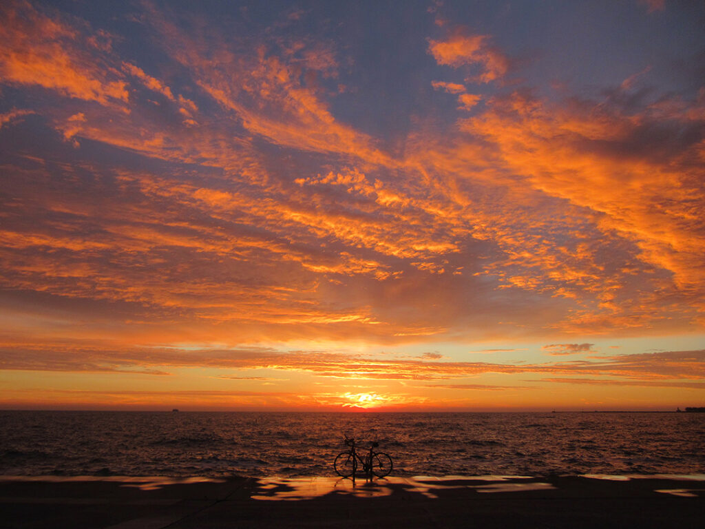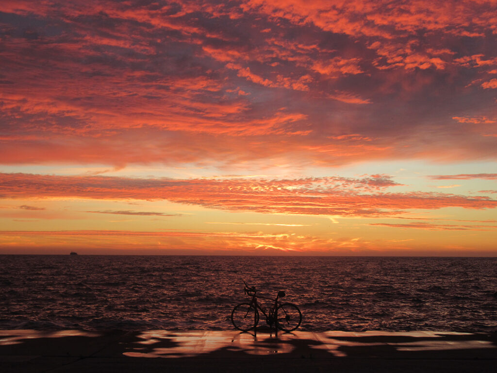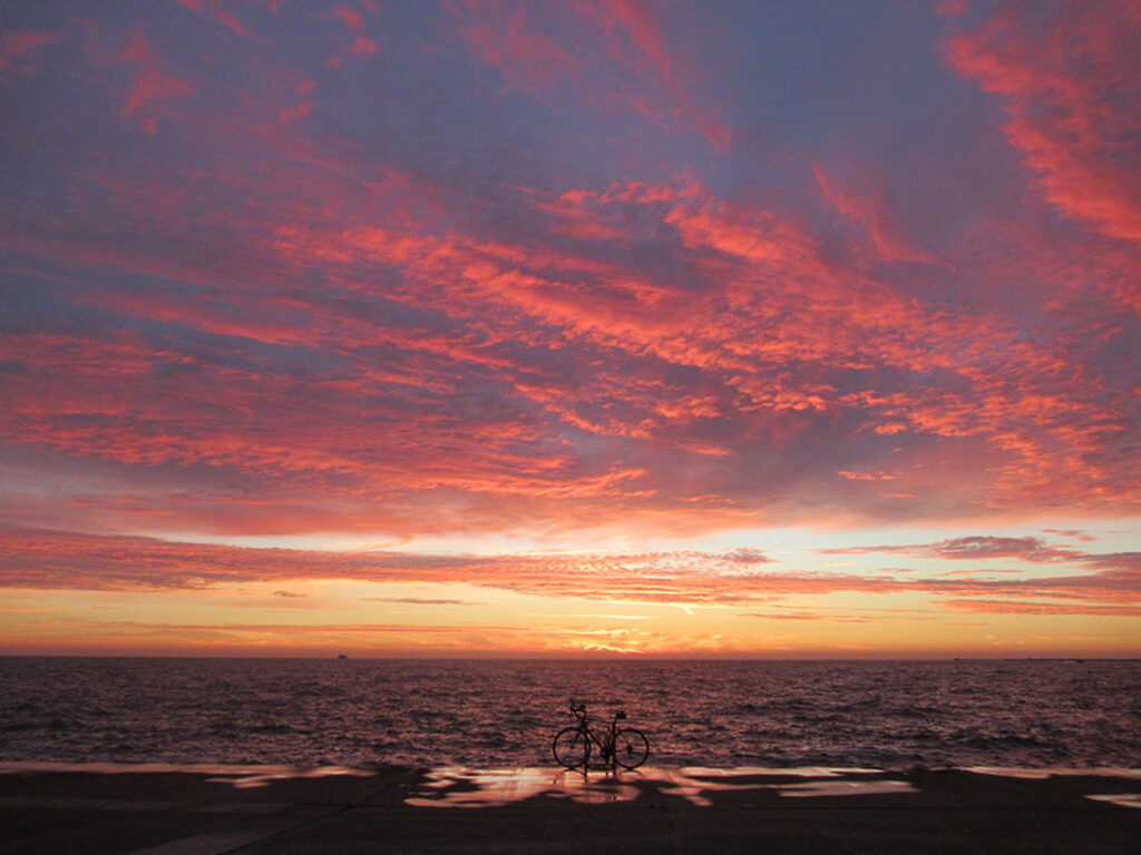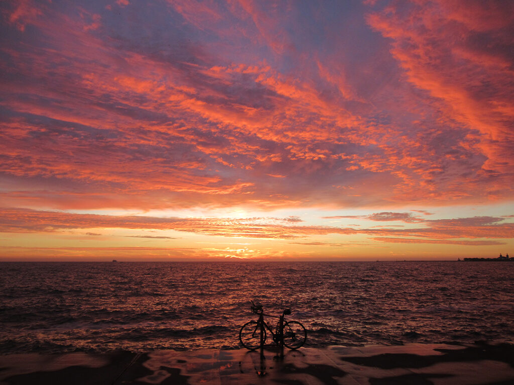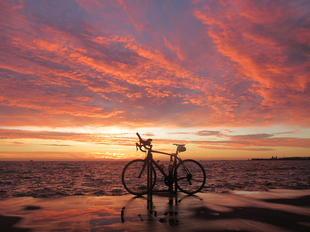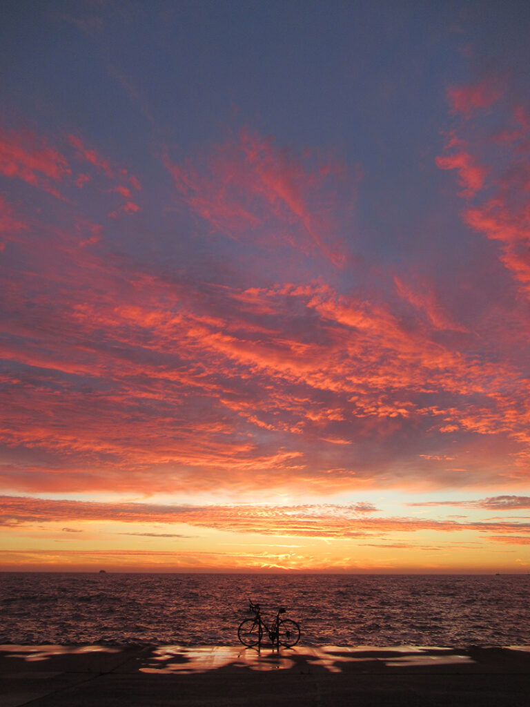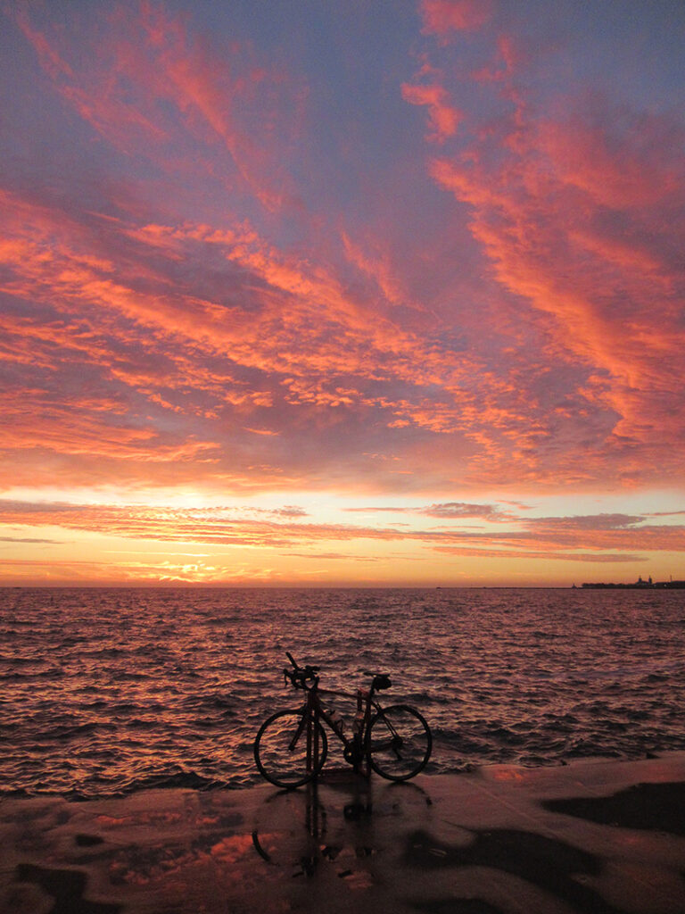 The colors, the clouds… all sweeping across the sky!!! It was tough to pedal & appreciate the sunrise at the same time. So I didn’t… I stopped, relaxed & marveled in the glorious sunrise!