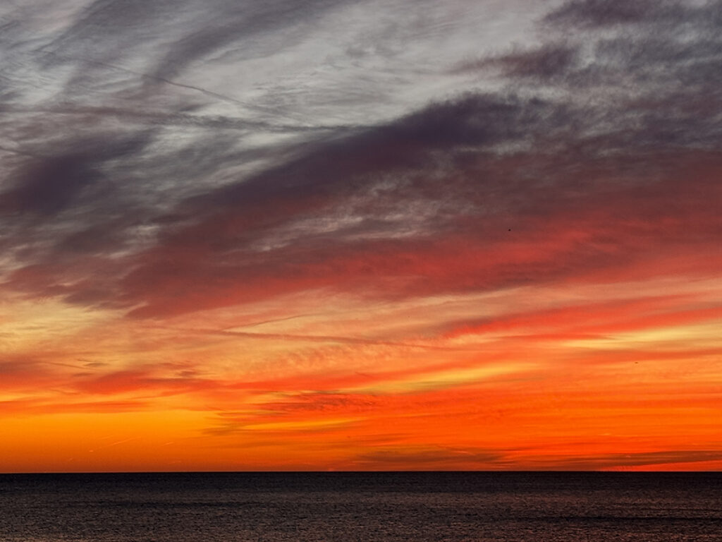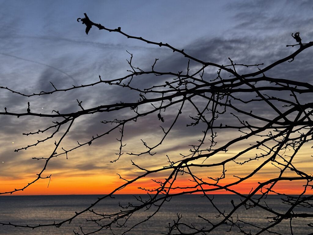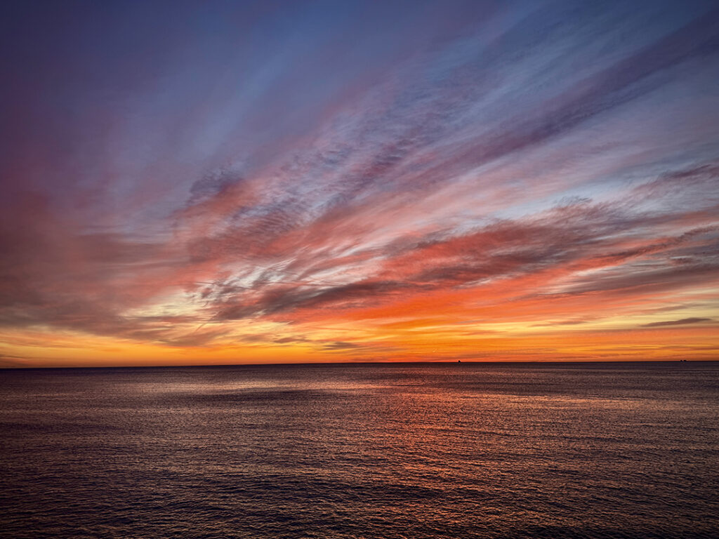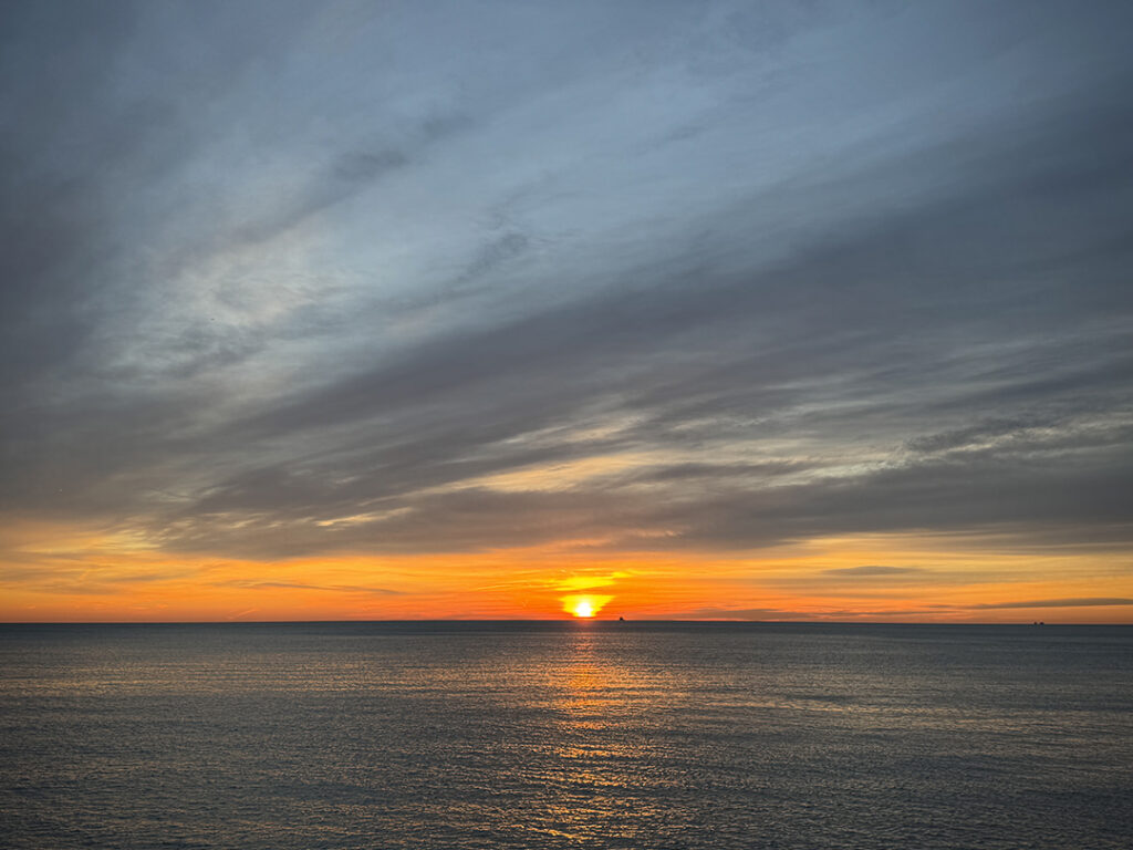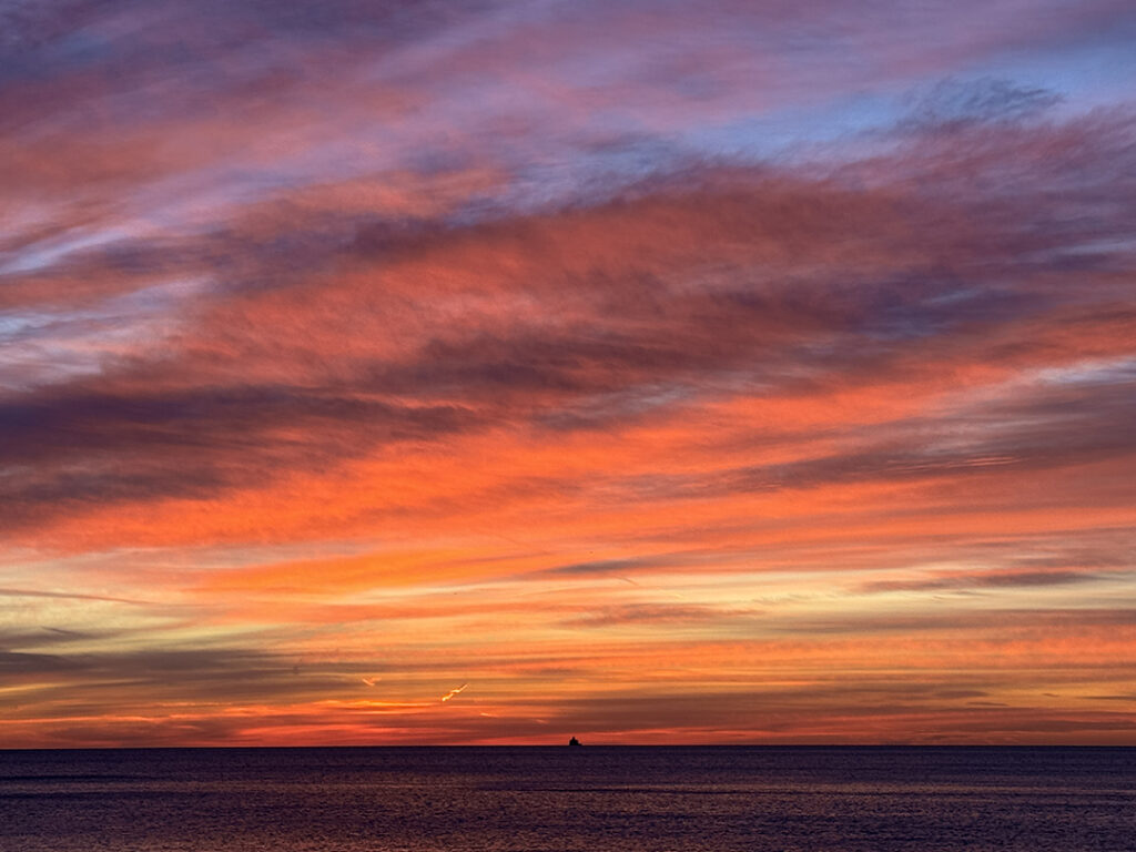 After a long rainy spell, it was nice to have a dry morning with a beautifully clouded sunrise. Great colors moving across the sky… as the clouds continued to move in. And it looks like it may just turn into another gray day.