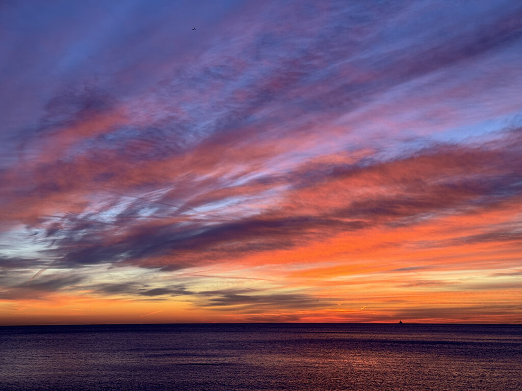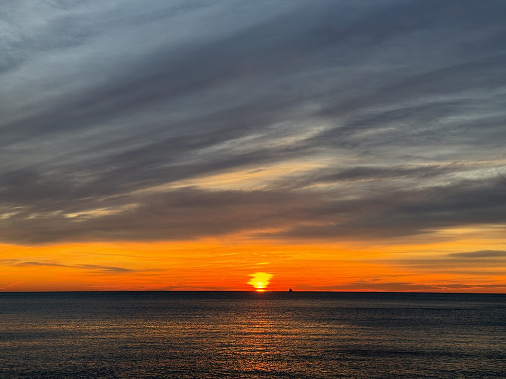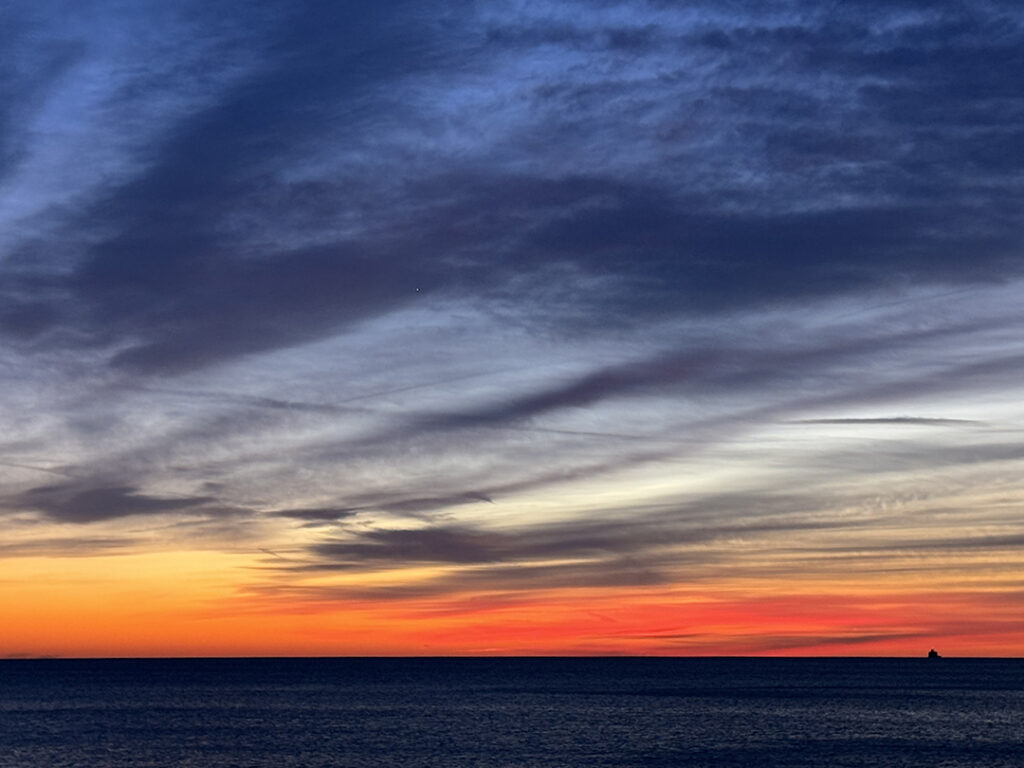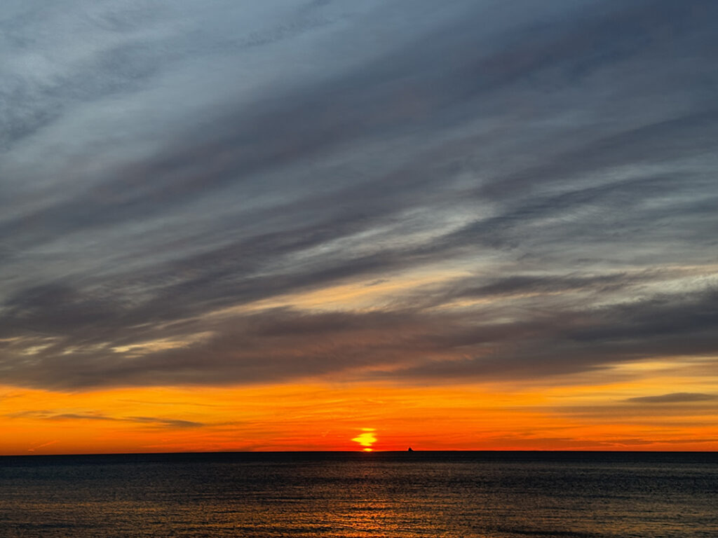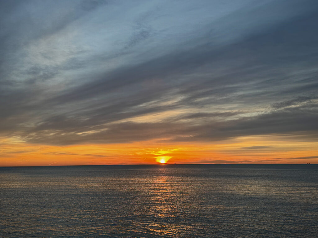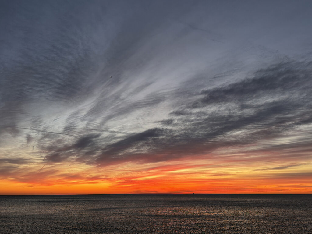 After a long rainy spell, it was nice to have a dry morning with a beautifully clouded sunrise. Great colors moving across the sky… as the clouds continued to move in. And it looks like it may just turn into another gray day.