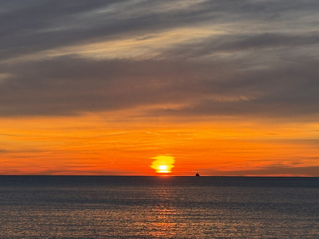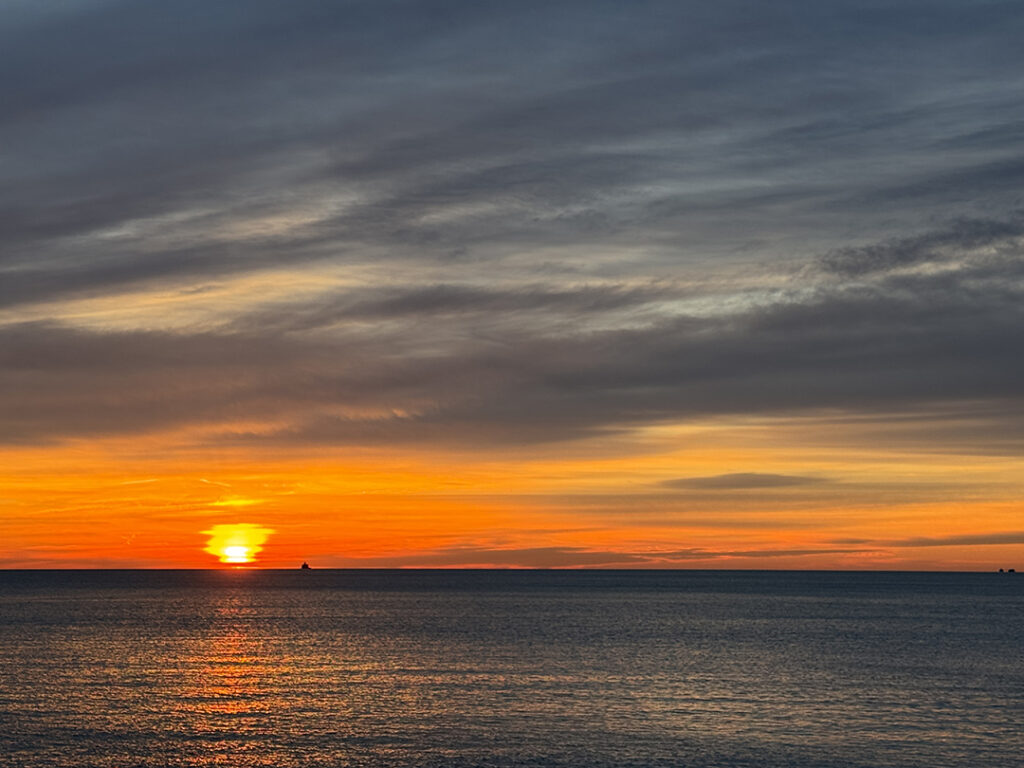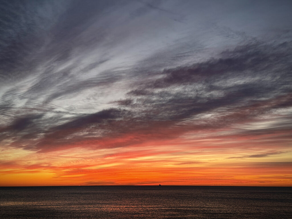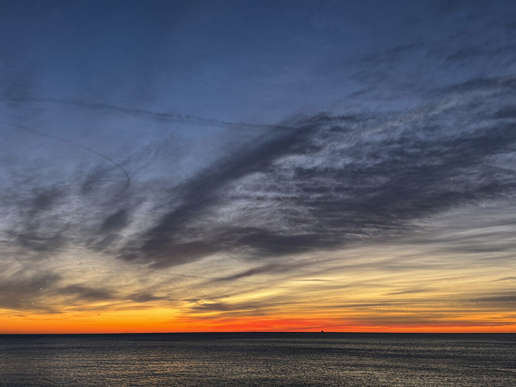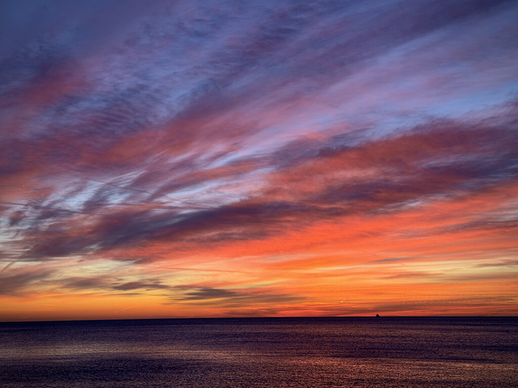 After a long rainy spell, it was nice to have a dry morning with a beautifully clouded sunrise. Great colors moving across the sky… as the clouds continued to move in. And it looks like it may just turn into another gray day.