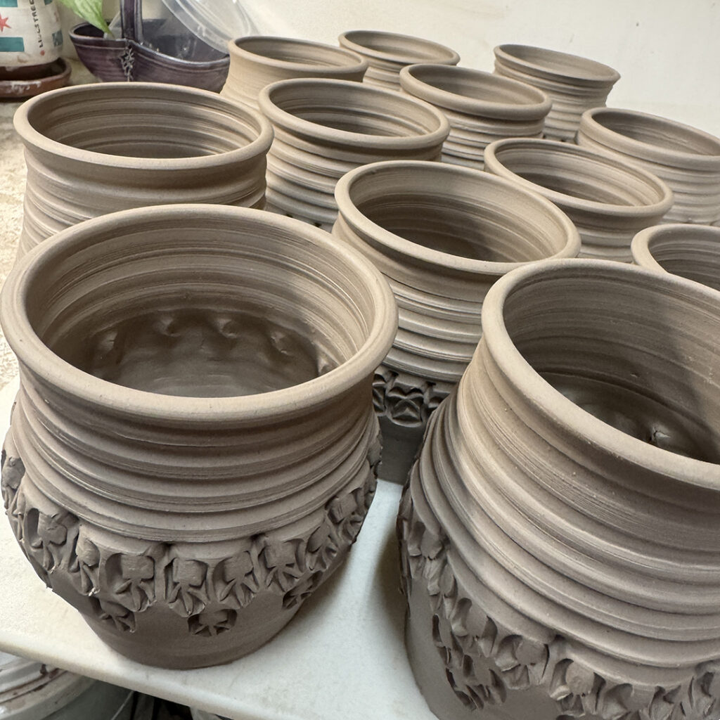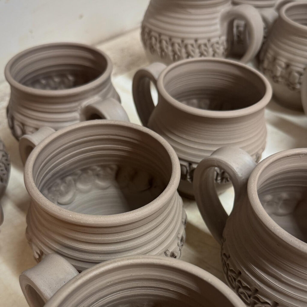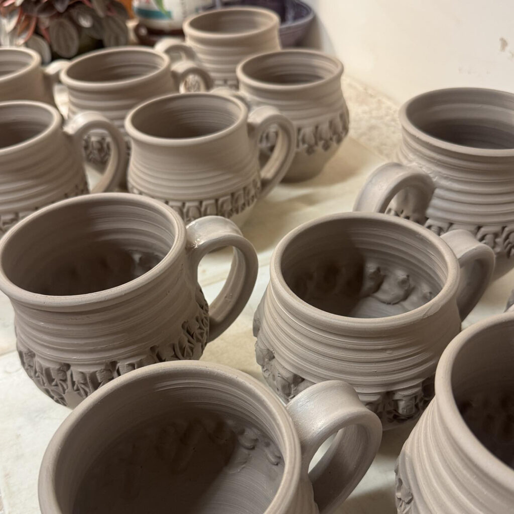 Been stamping some mug cylinders this morning. Adding some textures & patterns to the sides. Pressing in each stamp one by one… by one… by one…