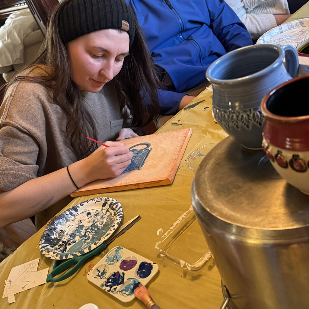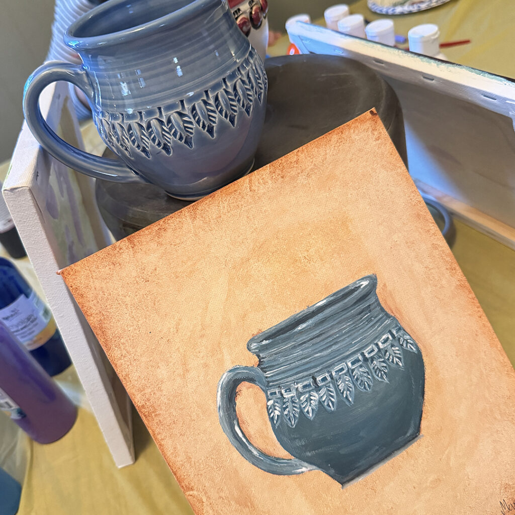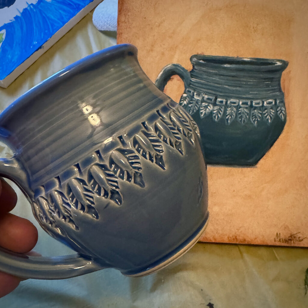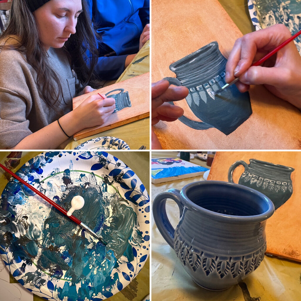 And part of the painting party was Merryn painting another mug. So fun to watch her process from “sketching it in” with sepia tones, and then adding color… then finishing with highlight details! Looks GREAT!!!… as does her hubby Will showing off another masterpiece!