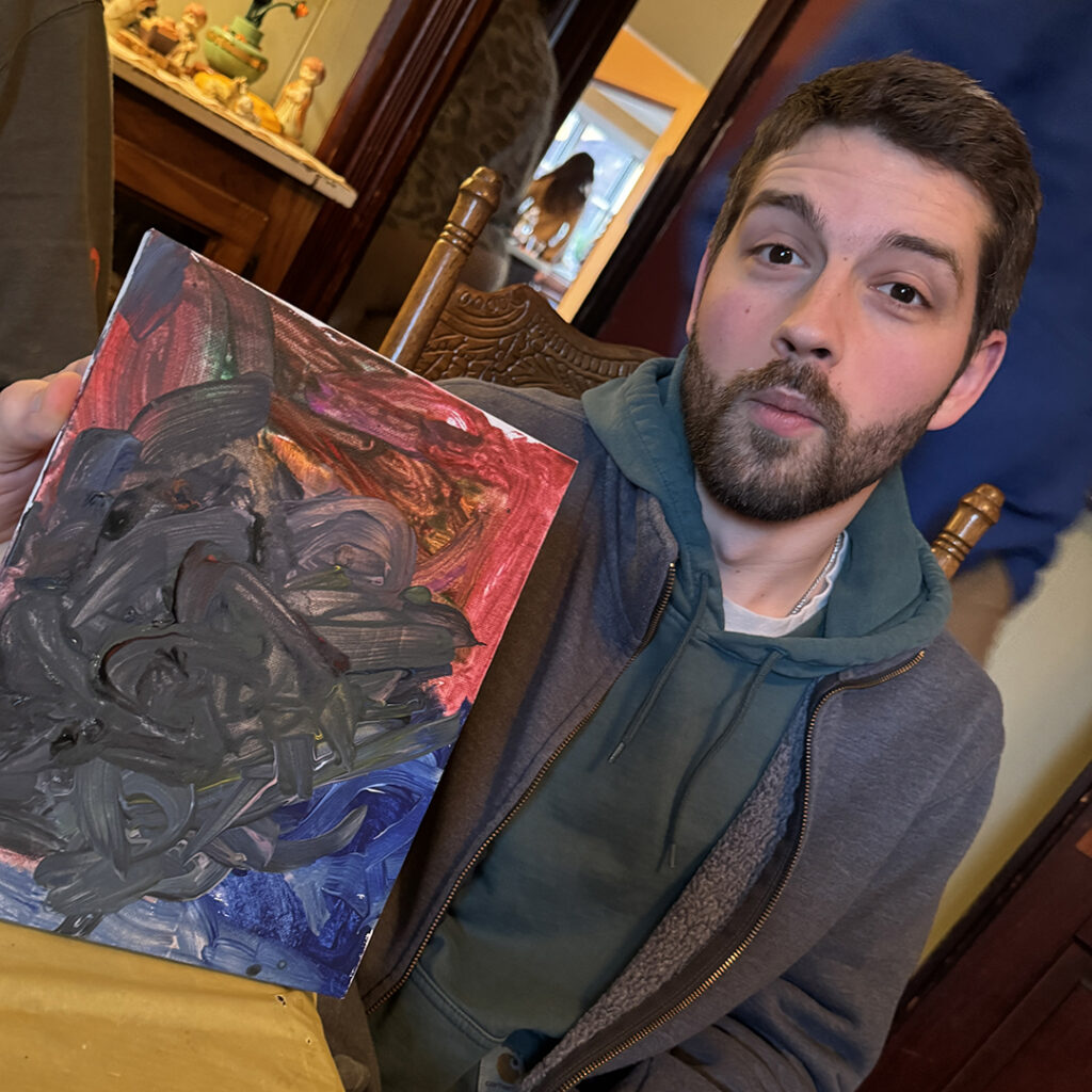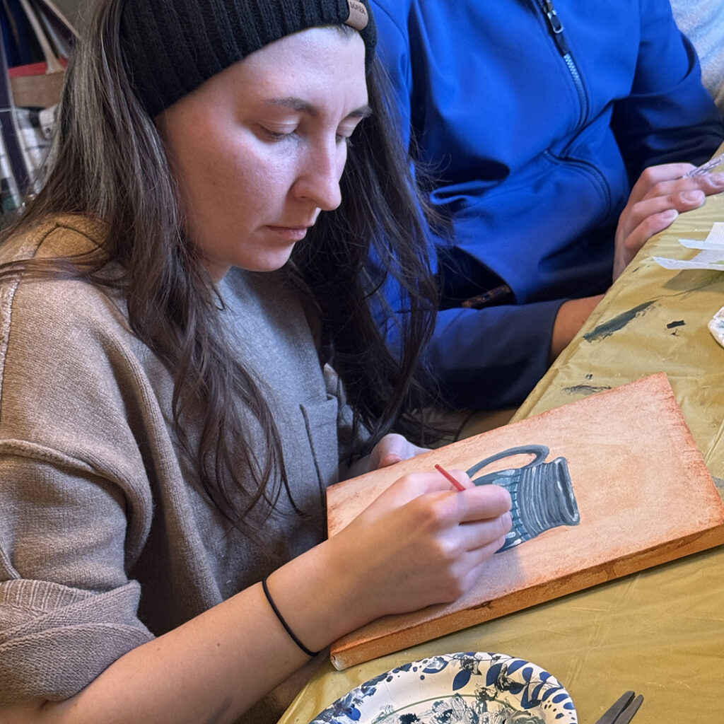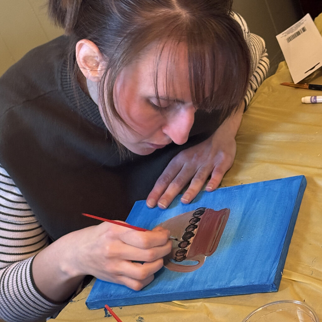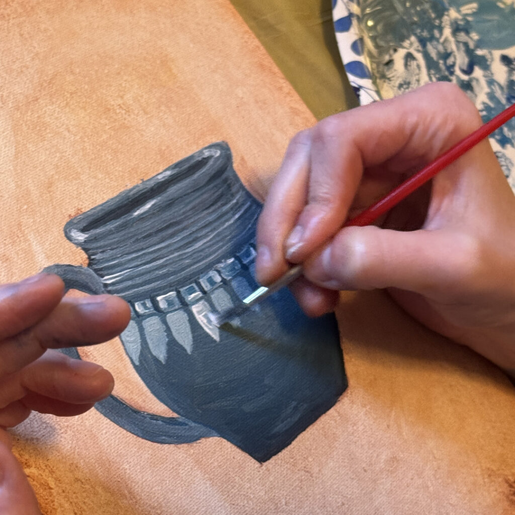 And part of the painting party was Merryn painting another mug. So fun to watch her process from “sketching it in” with sepia tones, and then adding color… then finishing with highlight details! Looks GREAT!!!… as does her hubby Will showing off another masterpiece!