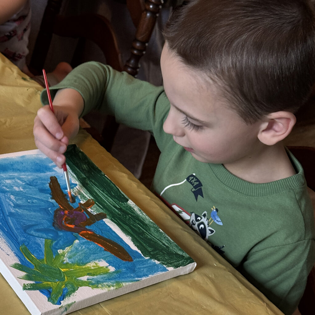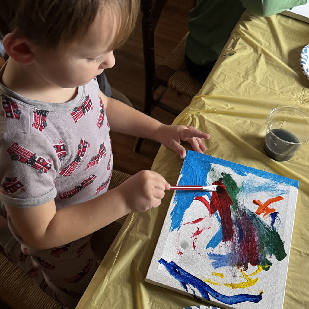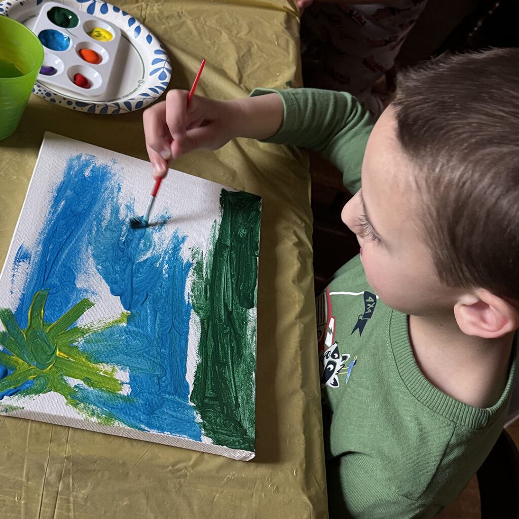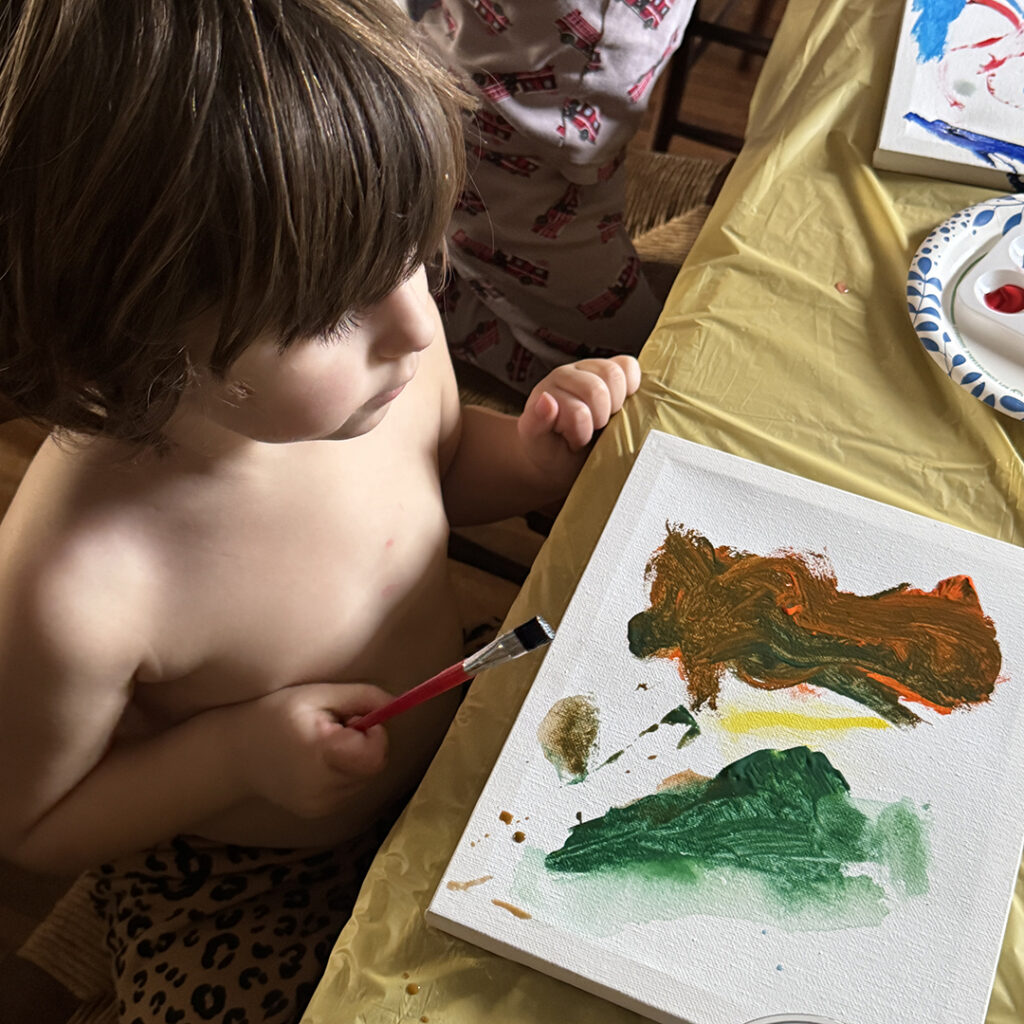 What better way to celebrate New Year’s Day than a little painting party with a bunch of little painters!!! Each creating their own masterpiece. Including Kieran who was working on painting one of my holiday mugs!