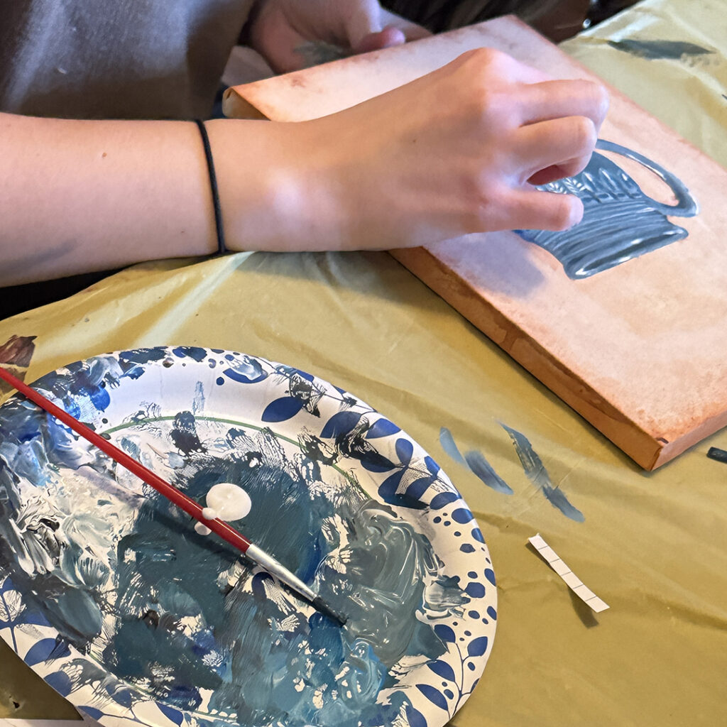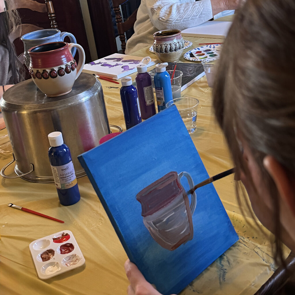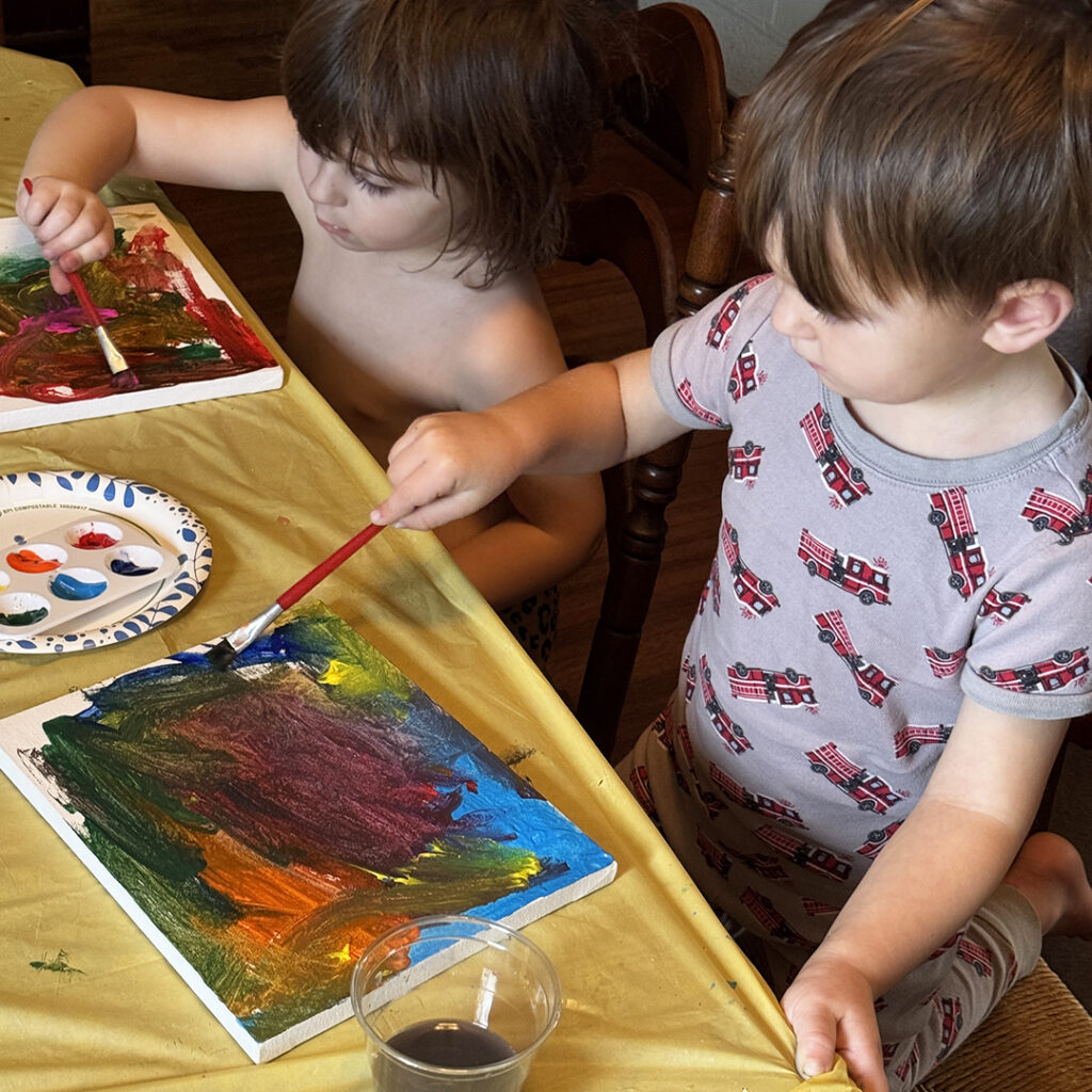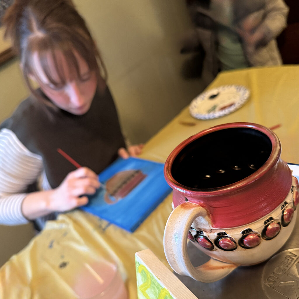 What better way to celebrate New Year’s Day than a little painting party with a bunch of little painters!!! Each creating their own masterpiece. Including Kieran who was working on painting one of my holiday mugs!