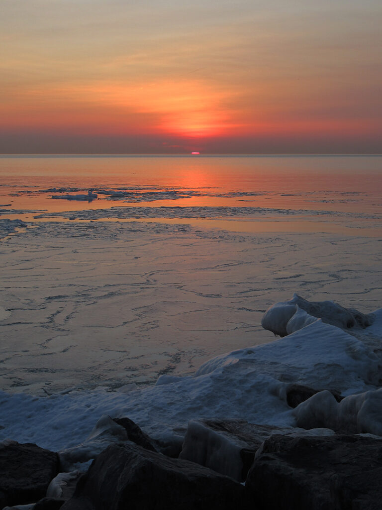 Sunrise serenity with calm reflections & floating ice masses. It’s going to be another “warm” day, so I’m hoping for some more ice melting. I know there will be more Winter to come… but I’d love a fresh clean start. I’d even be okay with some rain to wash everything down before the next round of snow? Living on the wild side… I even got my car washed yesterday!!! Dare to dream…